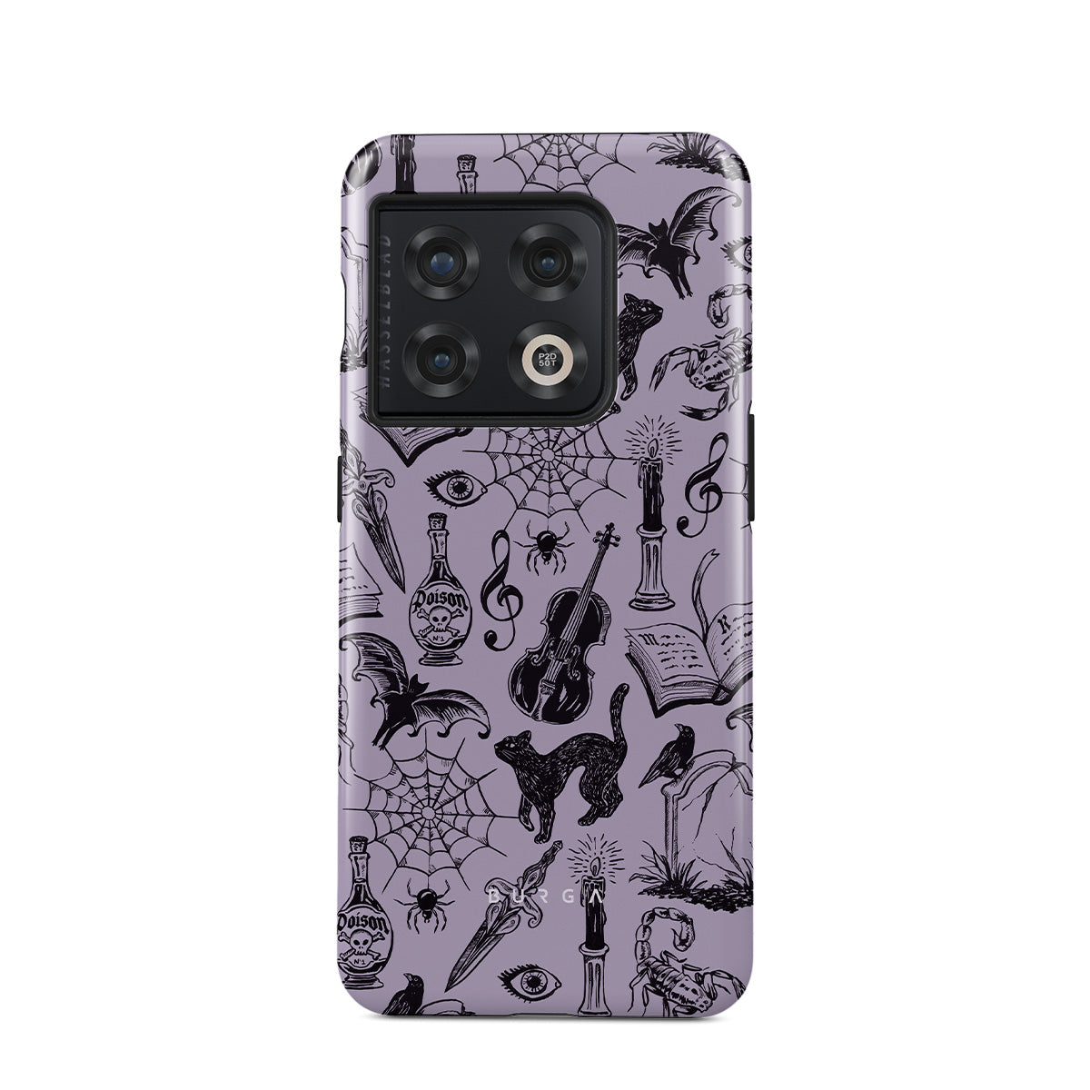 此設計特色:哥特風格塗鴉、神秘元素、蜘蛛、蜘蛛網、貓、提琴、眼睛、蠟燭、匕首、書本、蝙蝠、烏鴉、蠍子