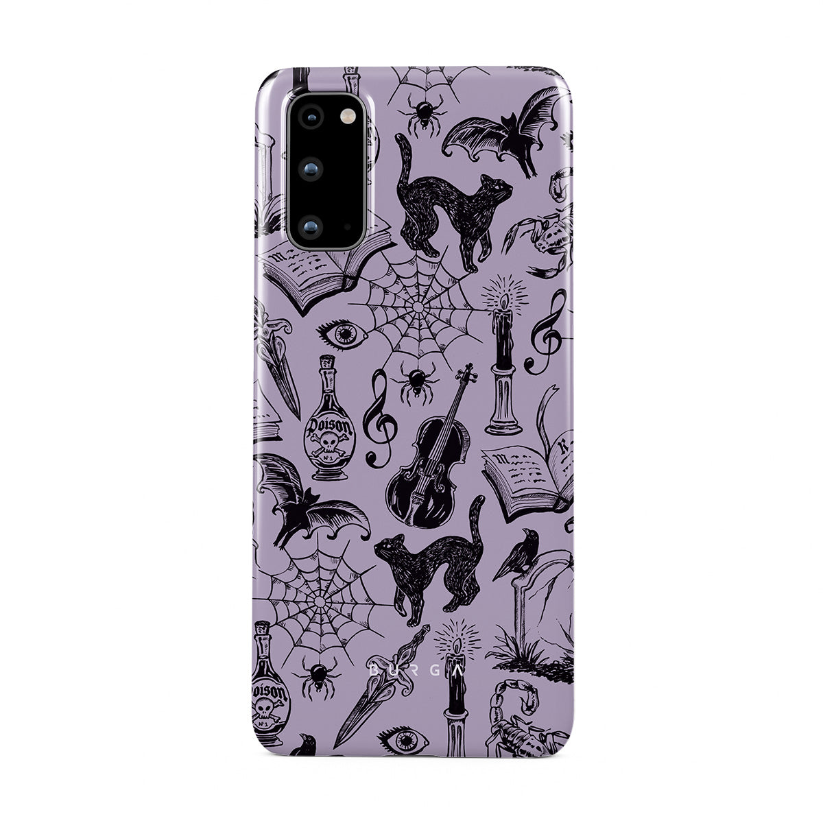 此設計特色:哥特風格塗鴉、神秘元素、蜘蛛、蜘蛛網、貓、提琴、眼睛、蠟燭、匕首、書本、蝙蝠、烏鴉、蠍子