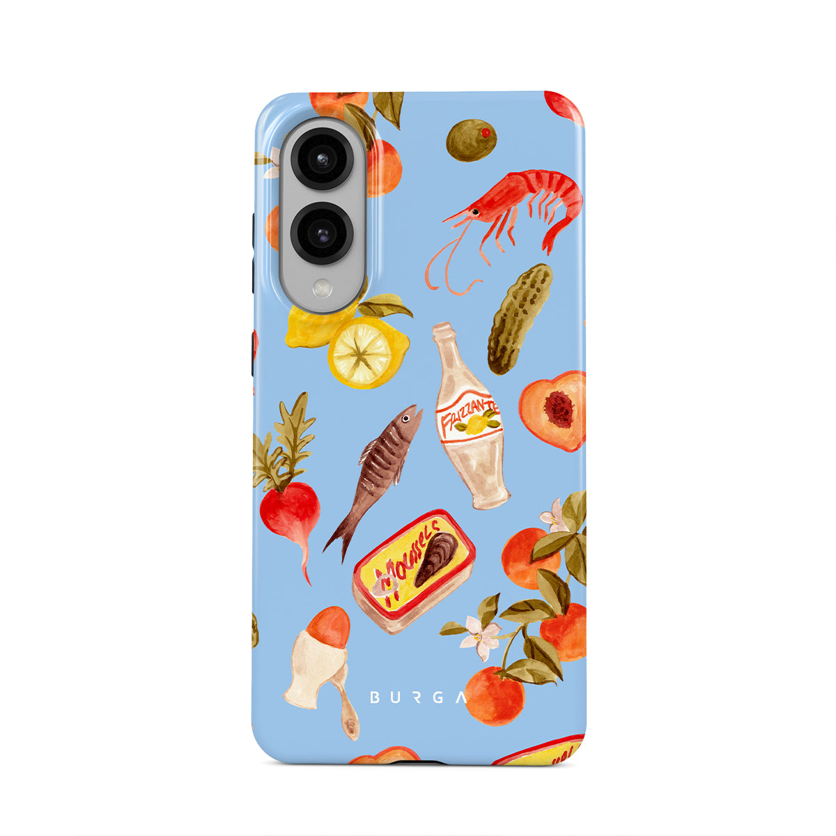 此設計特色:小龍蝦、柑橘類水果、野餐、檸檬、蛋、醃黃瓜、新鮮綠意、沙灘元素、水蜜桃、花卉、橄欖