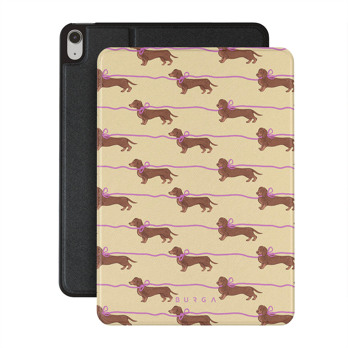 此設計特色: 戴著粉紅蝴蝶結的臘腸狗,非常可愛。