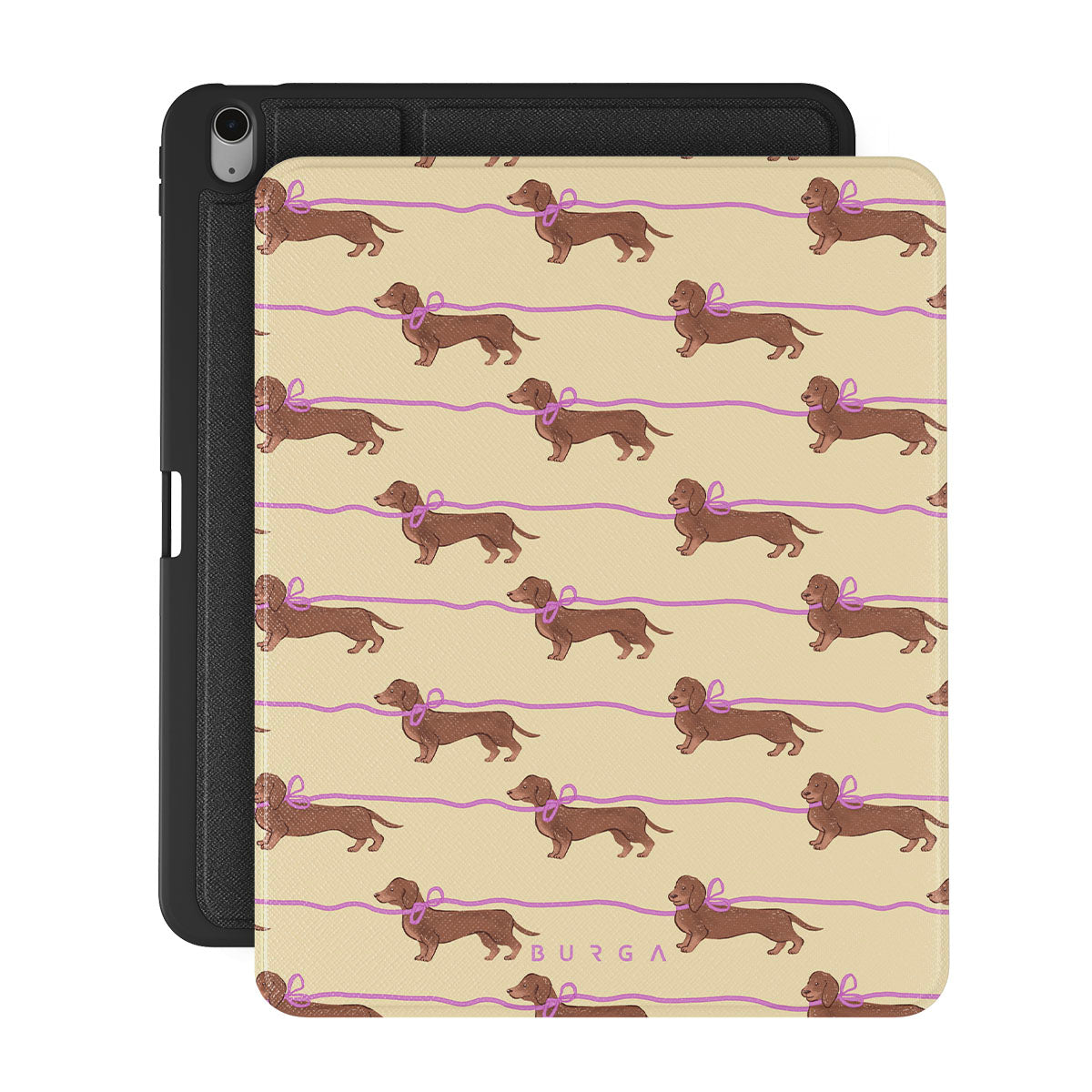 此設計特色: 戴著粉紅蝴蝶結的臘腸狗,非常可愛。