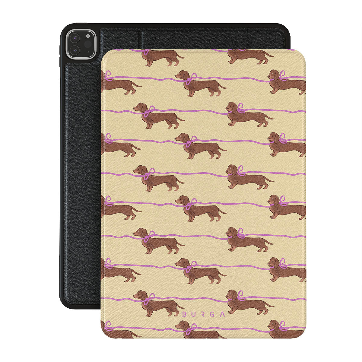 此設計特色: 戴著粉紅蝴蝶結的臘腸狗,非常可愛。