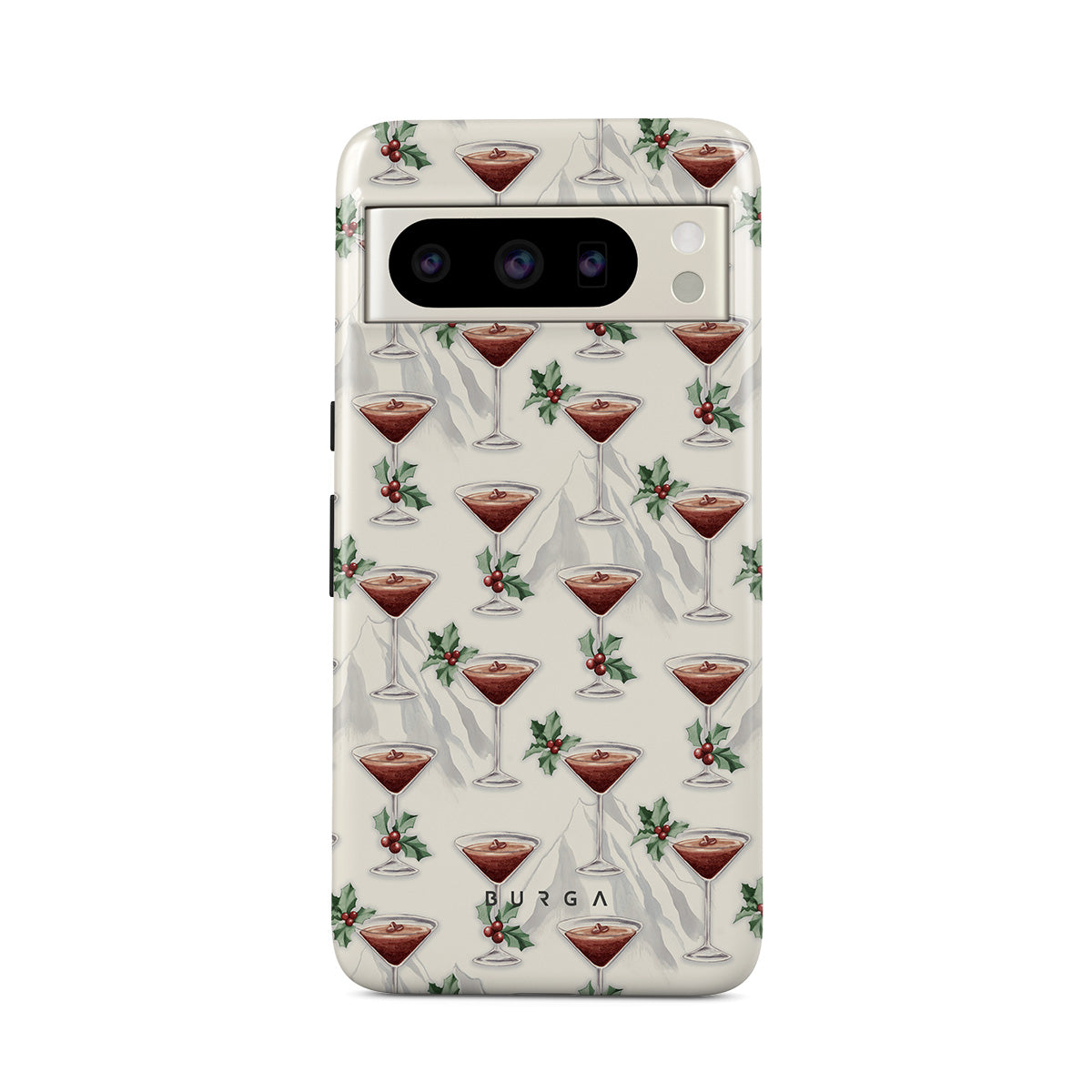 此設計特色:雞尾酒杯,馬丁尼,冬青葉