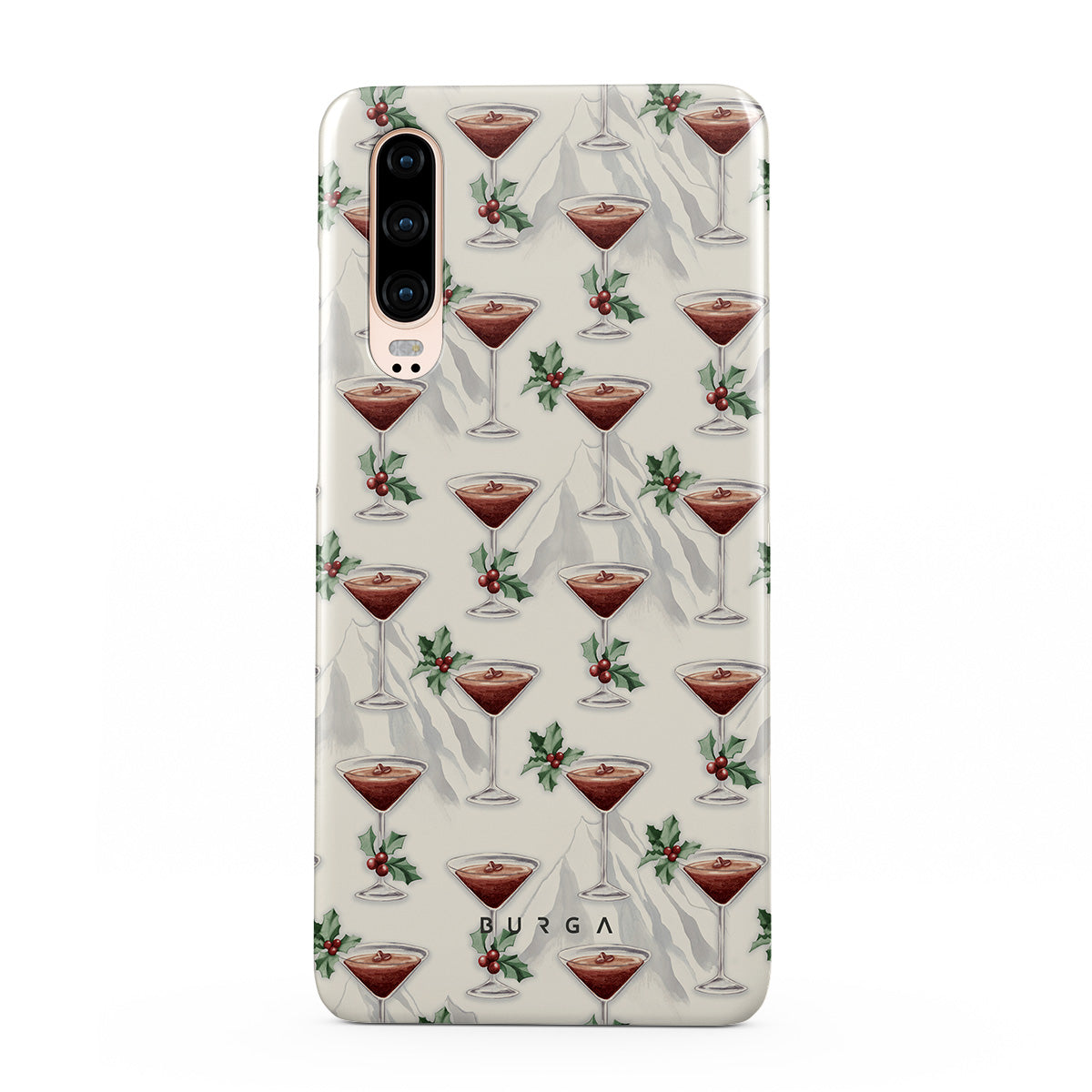 此設計特色:雞尾酒杯,馬丁尼,冬青葉