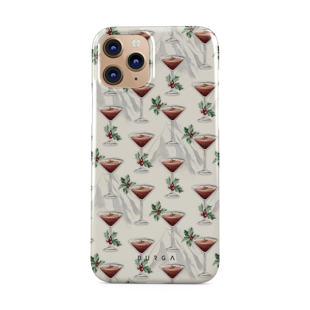 此設計特色:雞尾酒杯,馬丁尼,冬青葉