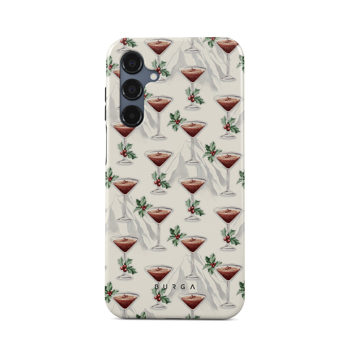 此設計特色:雞尾酒杯,馬丁尼,冬青葉