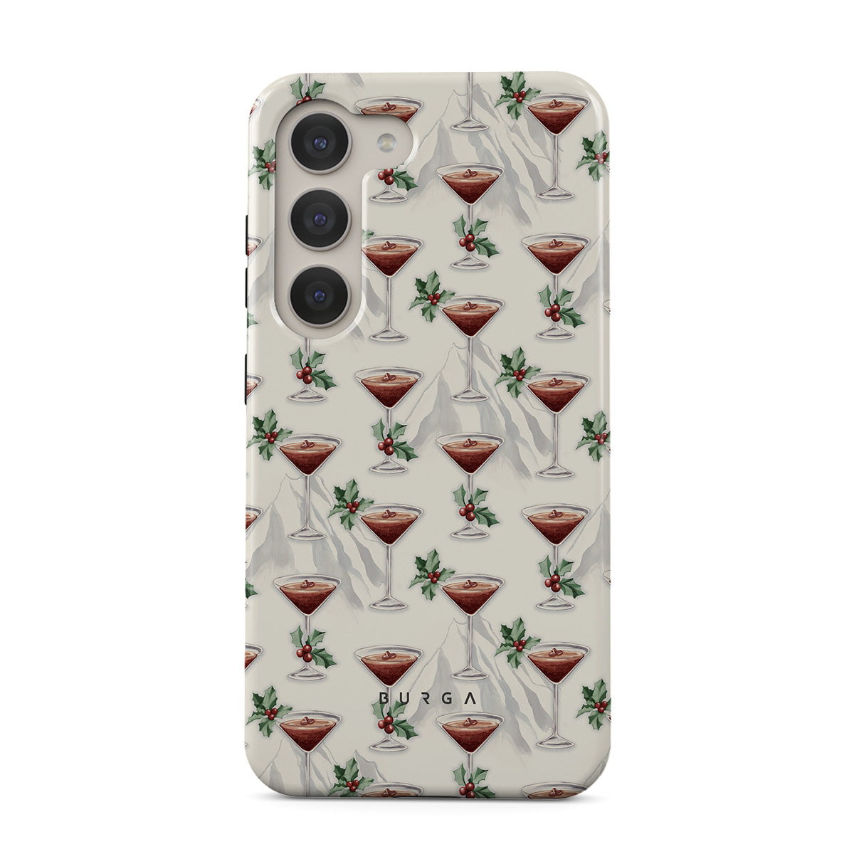 此設計特色:雞尾酒杯,馬丁尼,冬青葉