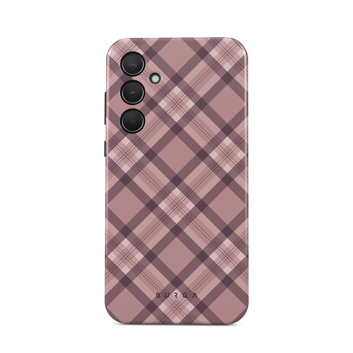 此設計特色包含:粉紅色和灰色格紋圖案、格子樣式