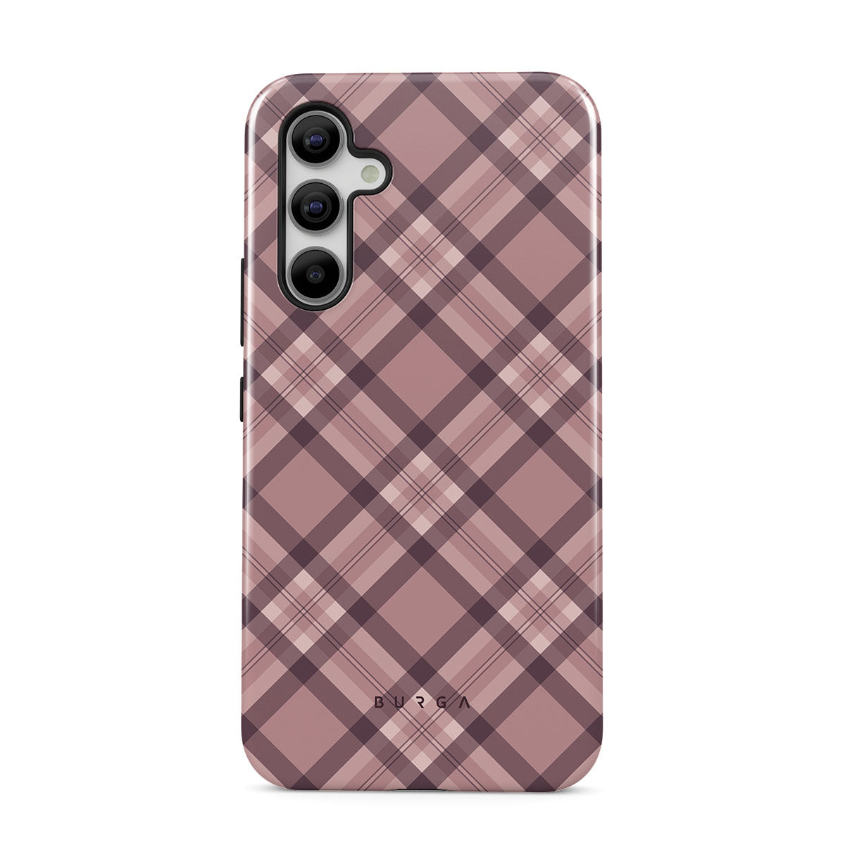 此設計特色包含:粉紅色和灰色格紋圖案、格子樣式