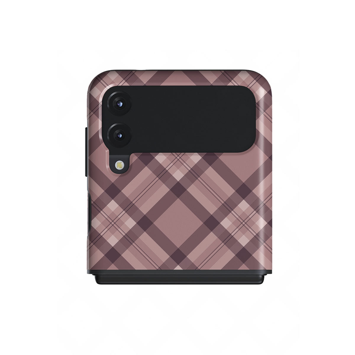 此設計特色包含:粉紅色和灰色格紋圖案、格子樣式