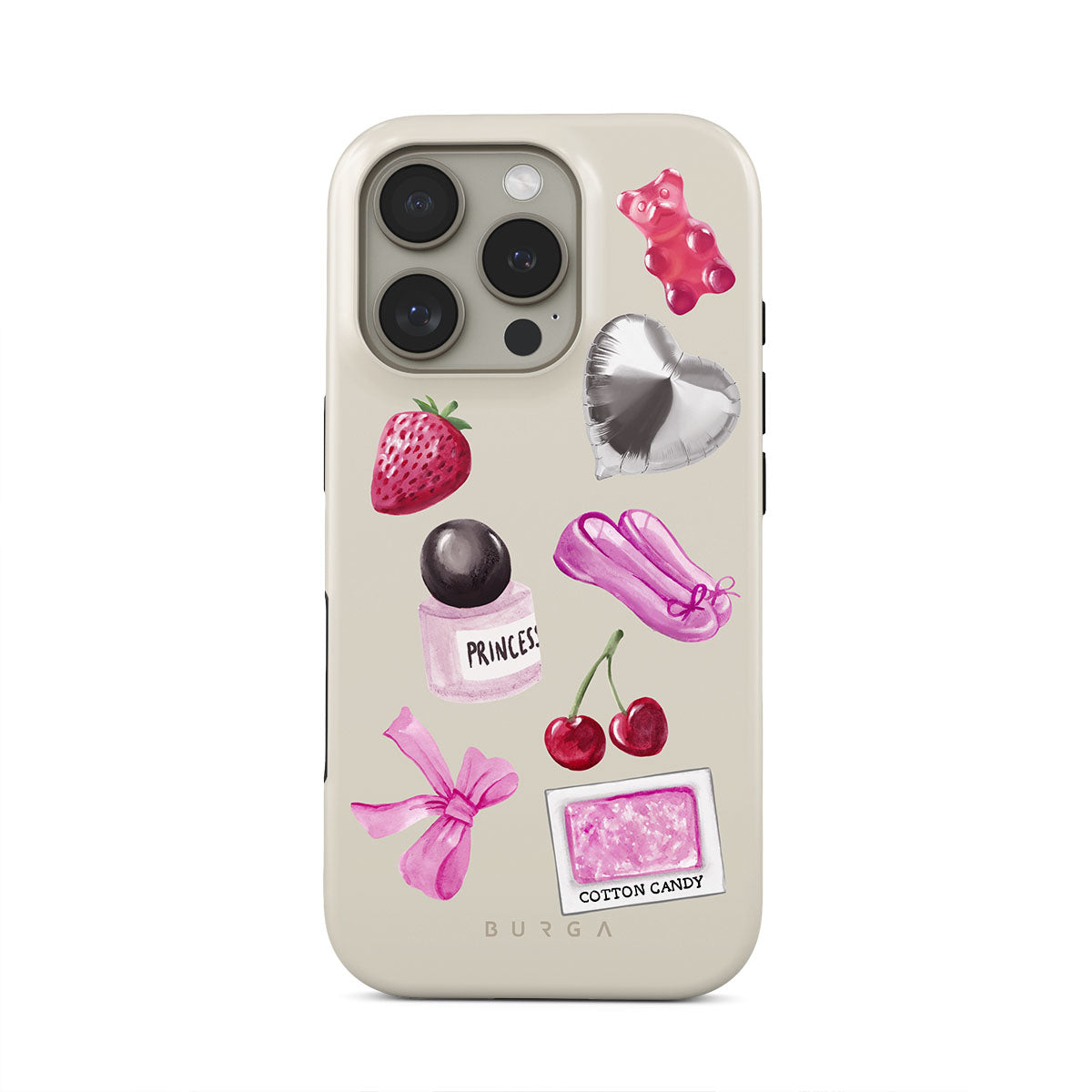 此設計特色:粉色蝴蝶結、銀色愛心氣球、香水瓶、草莓、櫻桃、粉色芭蕾舞鞋、棉花糖貼紙、粉色小熊軟糖