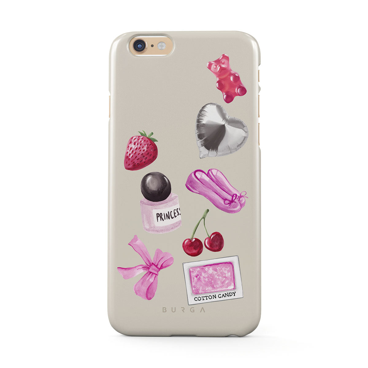 此設計特色:粉色蝴蝶結、銀色愛心氣球、香水瓶、草莓、櫻桃、粉色芭蕾舞鞋、棉花糖貼紙、粉色小熊軟糖