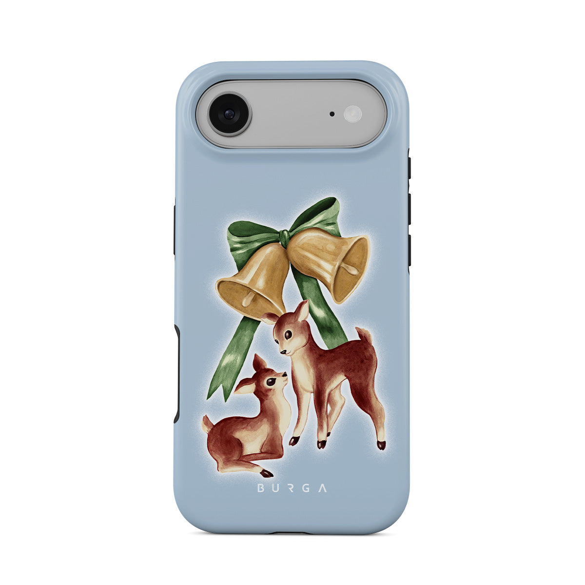 此設計特色:復古馴鹿,聖誕鈴鐺,金鈴,復古馴鹿插畫,小鹿,淺藍色背景