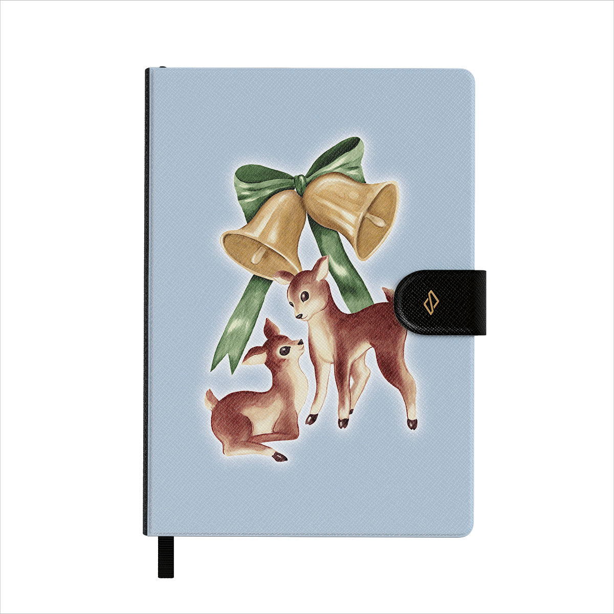 此設計特色:復古馴鹿,聖誕鈴鐺,金鈴,復古馴鹿插畫,小鹿,淺藍色背景
