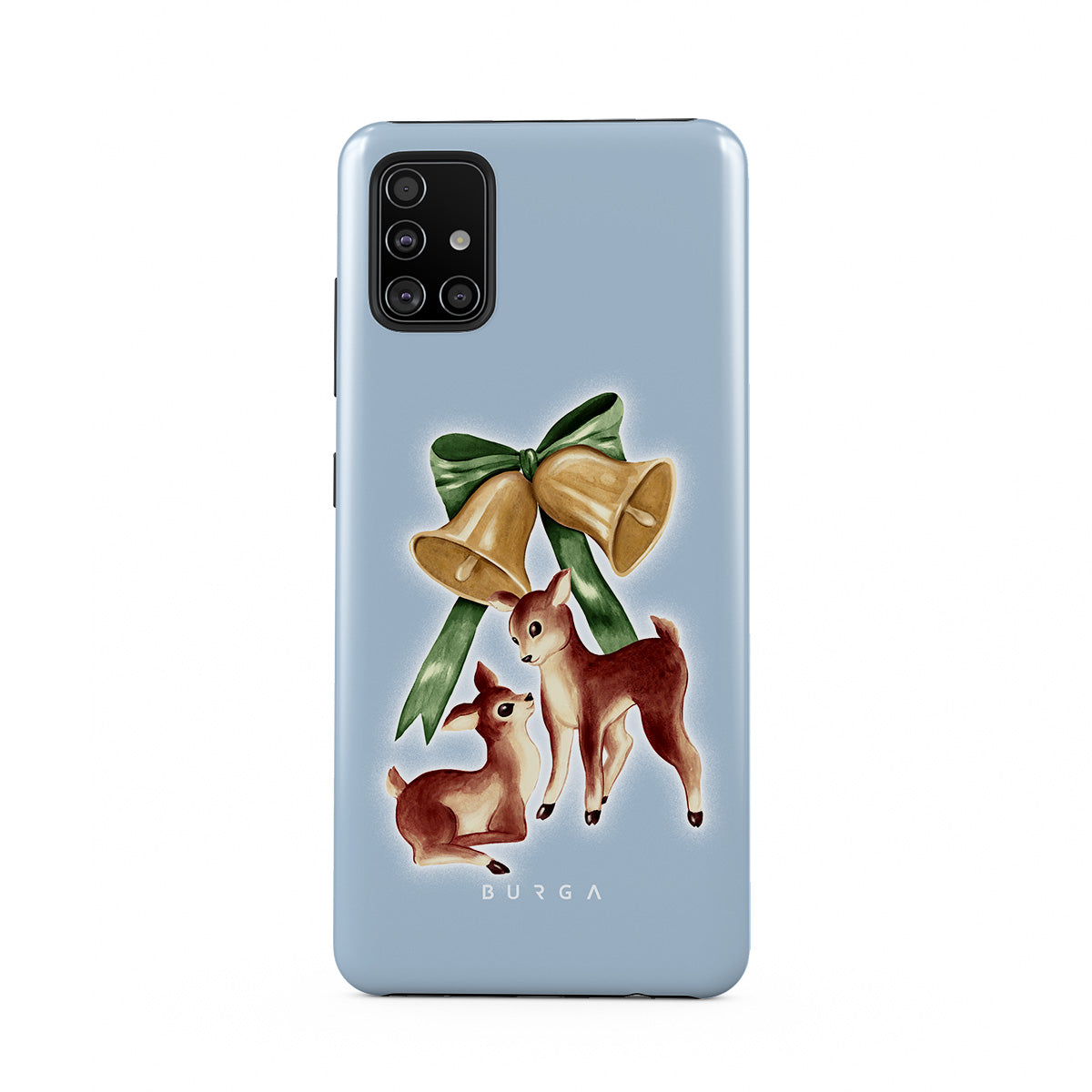 此設計特色:復古馴鹿,聖誕鈴鐺,金鈴,復古馴鹿插畫,小鹿,淺藍色背景