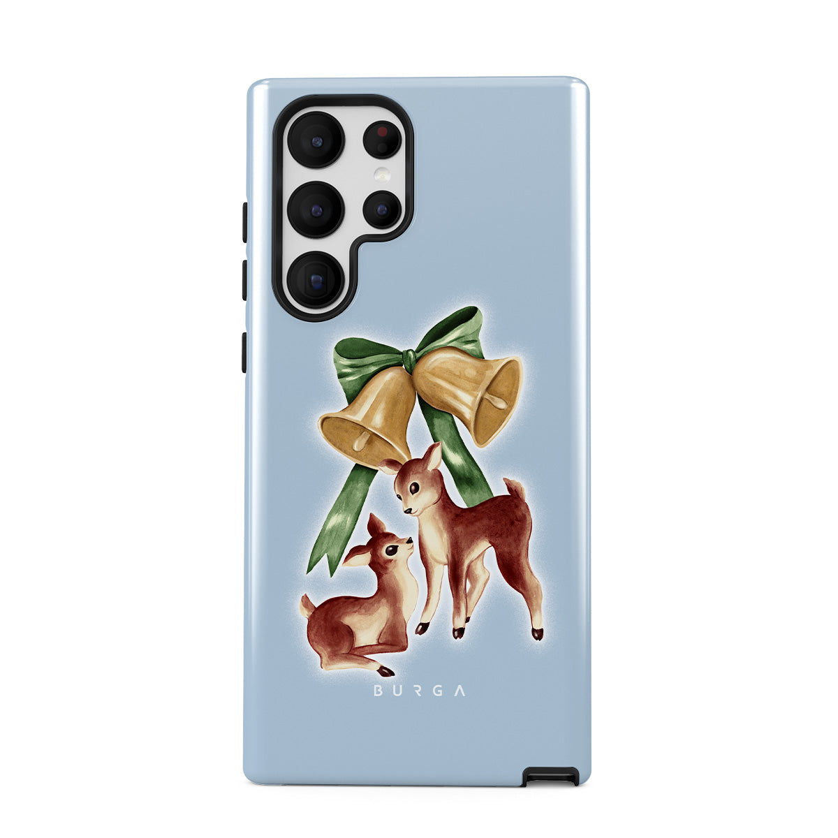 此設計特色:復古馴鹿,聖誕鈴鐺,金鈴,復古馴鹿插畫,小鹿,淺藍色背景
