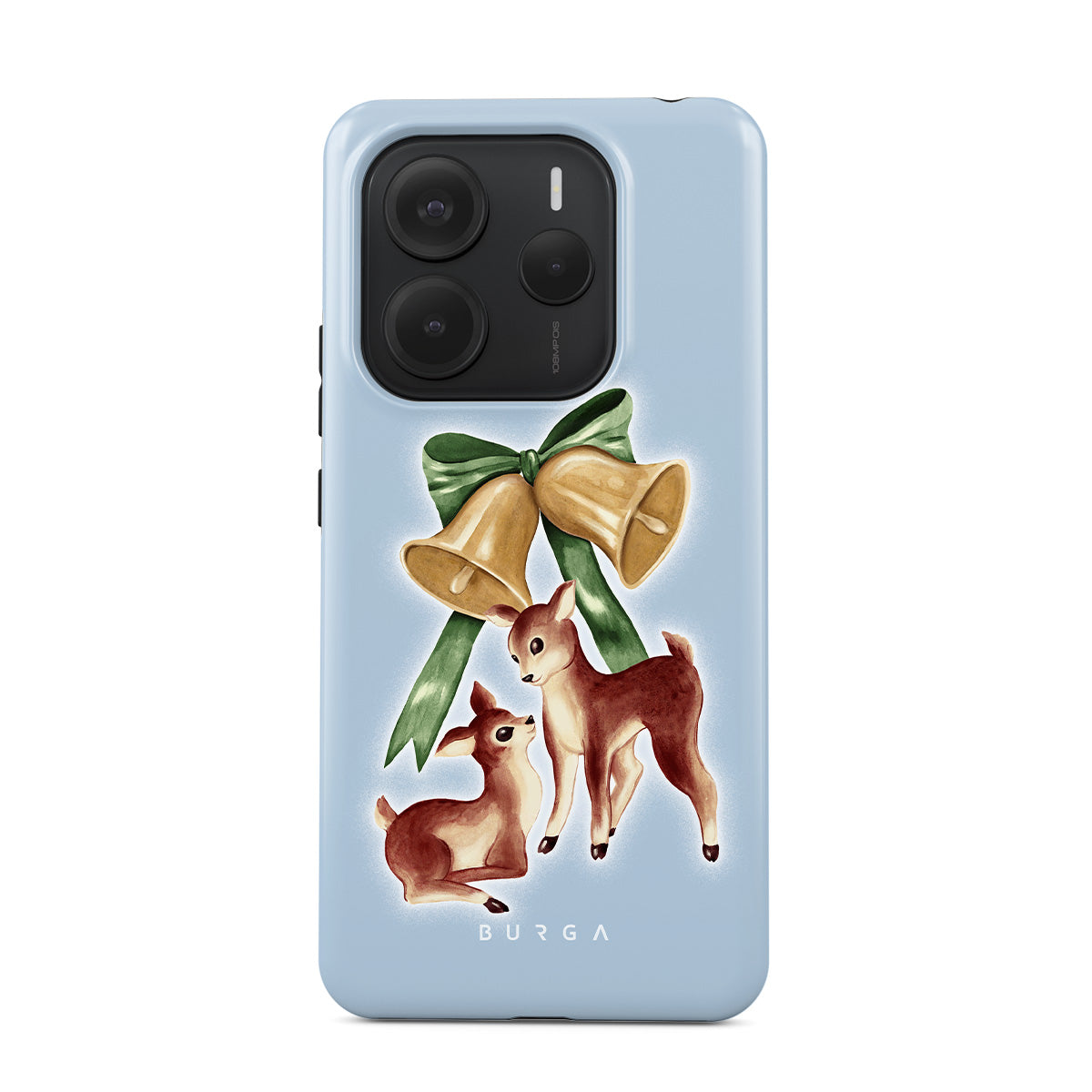 此設計特色:復古馴鹿,聖誕鈴鐺,金鈴,復古馴鹿插畫,小鹿,淺藍色背景