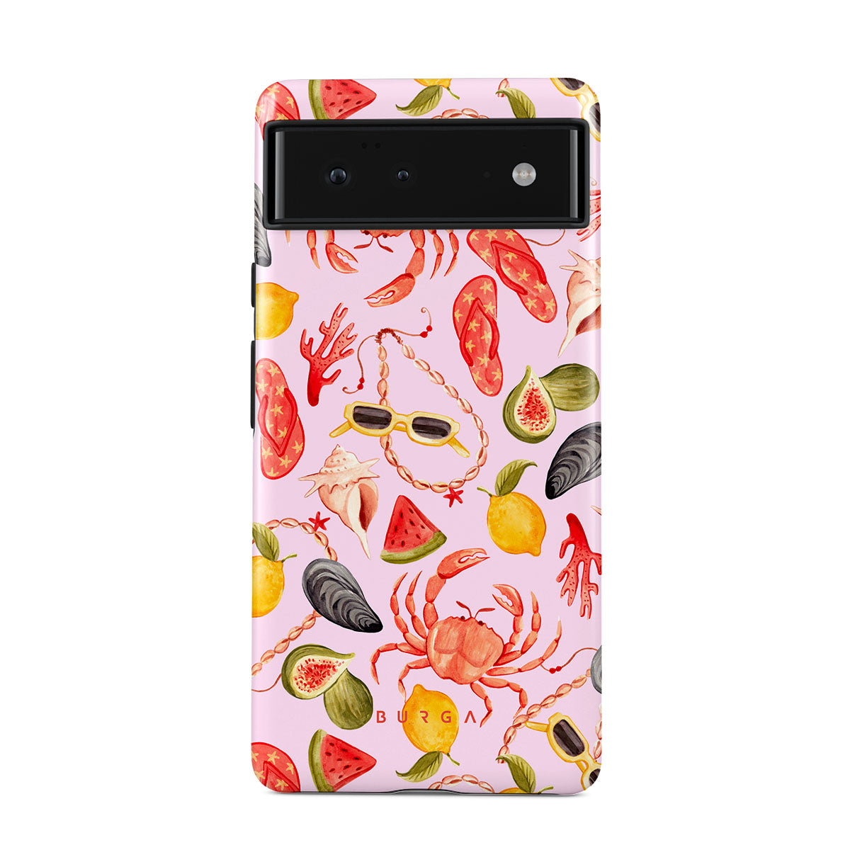 此設計特色: 西瓜、太阳镜、海鲜、螃蟹、人字拖、牡蛎、柠檬、鲜艳的颜色、热带主题