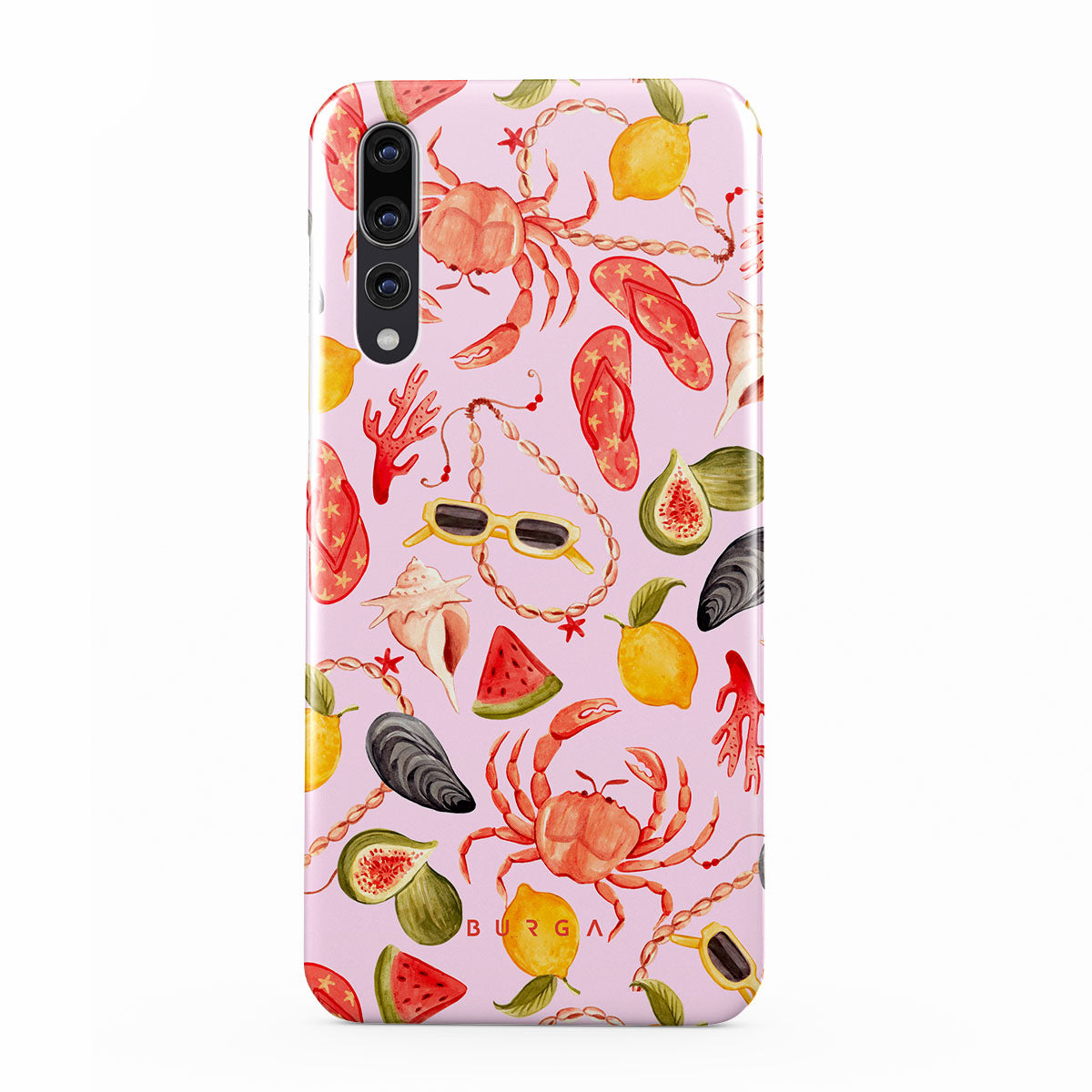 此設計特色: 西瓜、太阳镜、海鲜、螃蟹、人字拖、牡蛎、柠檬、鲜艳的颜色、热带主题