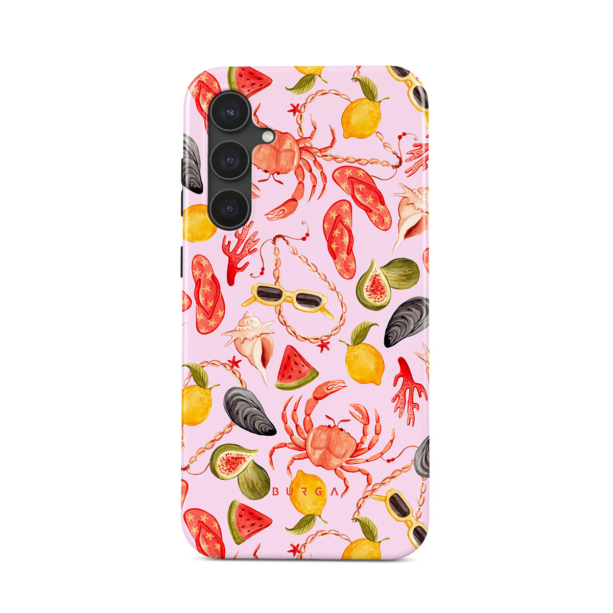 此設計特色: 西瓜、太阳镜、海鲜、螃蟹、人字拖、牡蛎、柠檬、鲜艳的颜色、热带主题