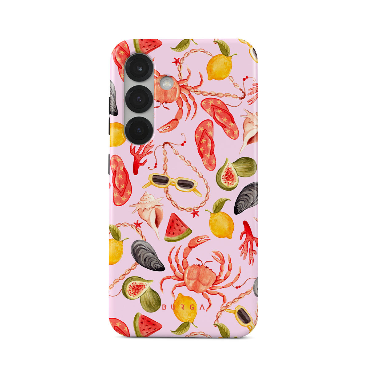 此設計特色: 西瓜、太阳镜、海鲜、螃蟹、人字拖、牡蛎、柠檬、鲜艳的颜色、热带主题