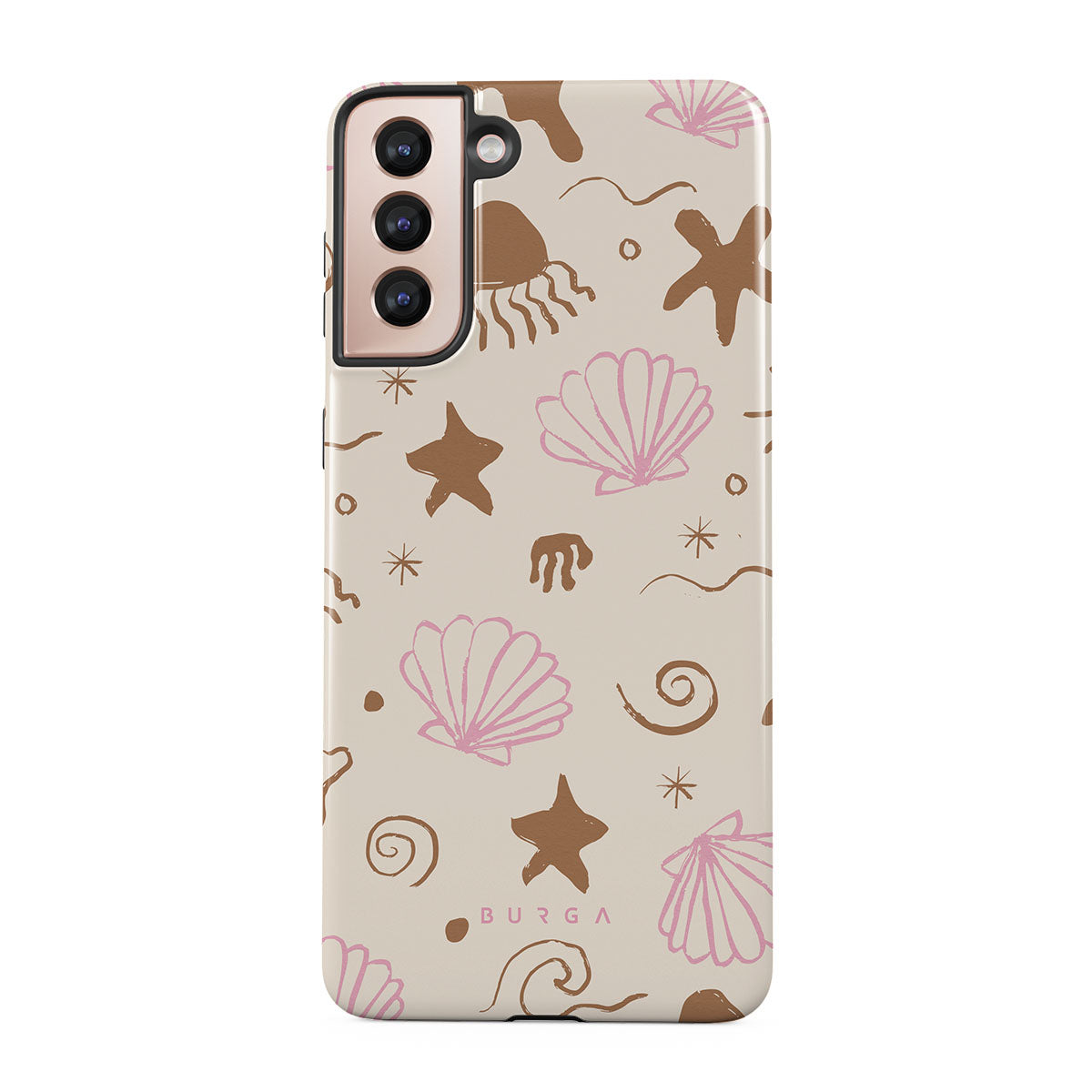 這款手機殼的設計元素包括 星星, 貝殼, 大海