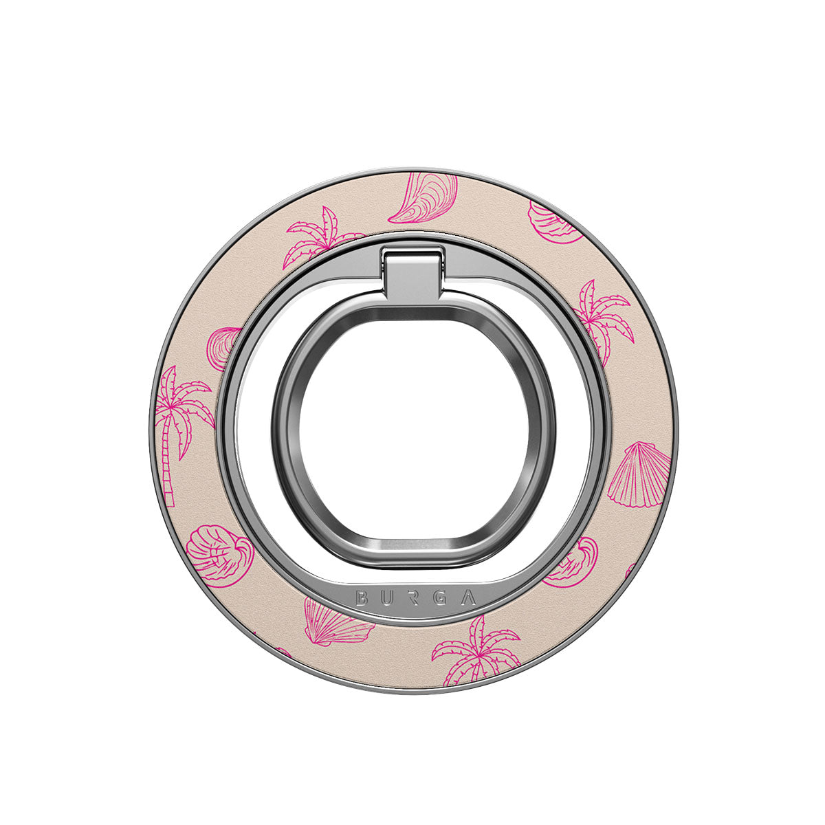 這款磁吸指環支架喀一聲即可穩穩吸附,不需黏膠、不麻煩。滑手機時可以單手使用,也可以追劇時當作支架,抑或作為搭配 BURGA 手機殼的時尚配件。