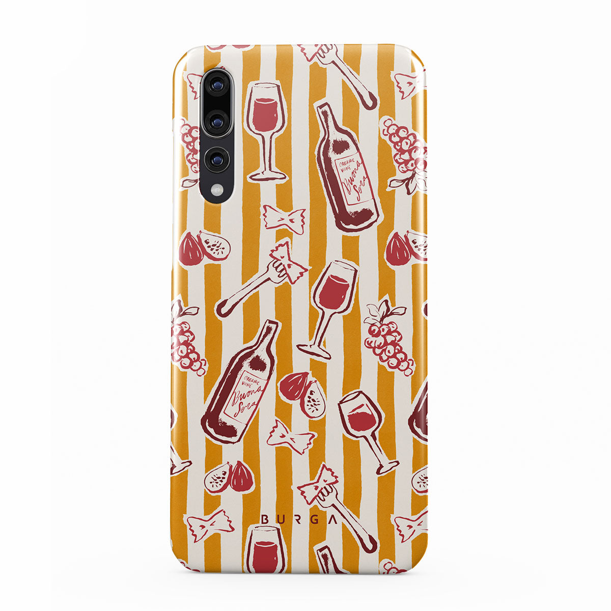 此設計特色:水果、無花果、葡萄、叉子、義大利麵、葡萄酒、酒杯、條紋