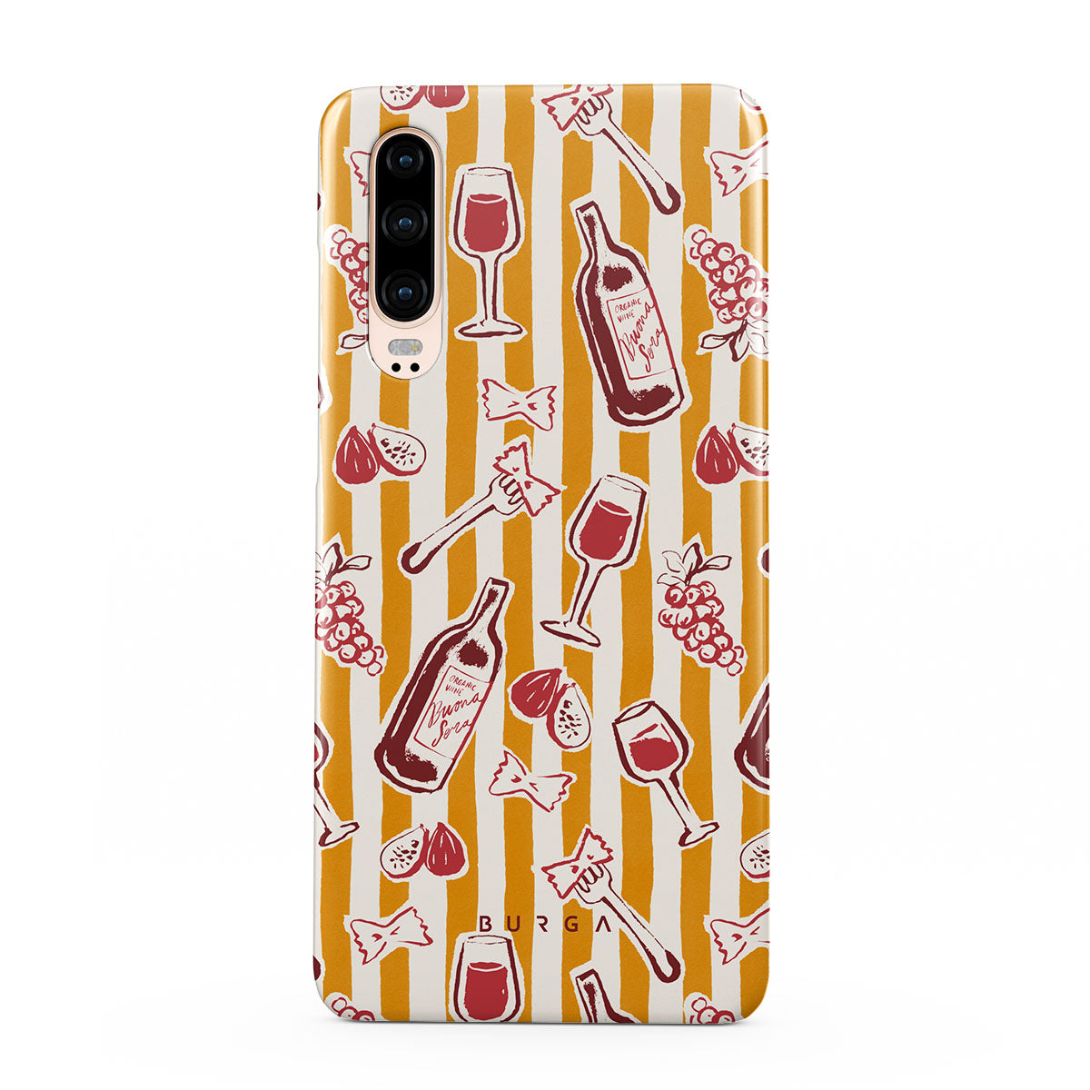 此設計特色:水果、無花果、葡萄、叉子、義大利麵、葡萄酒、酒杯、條紋