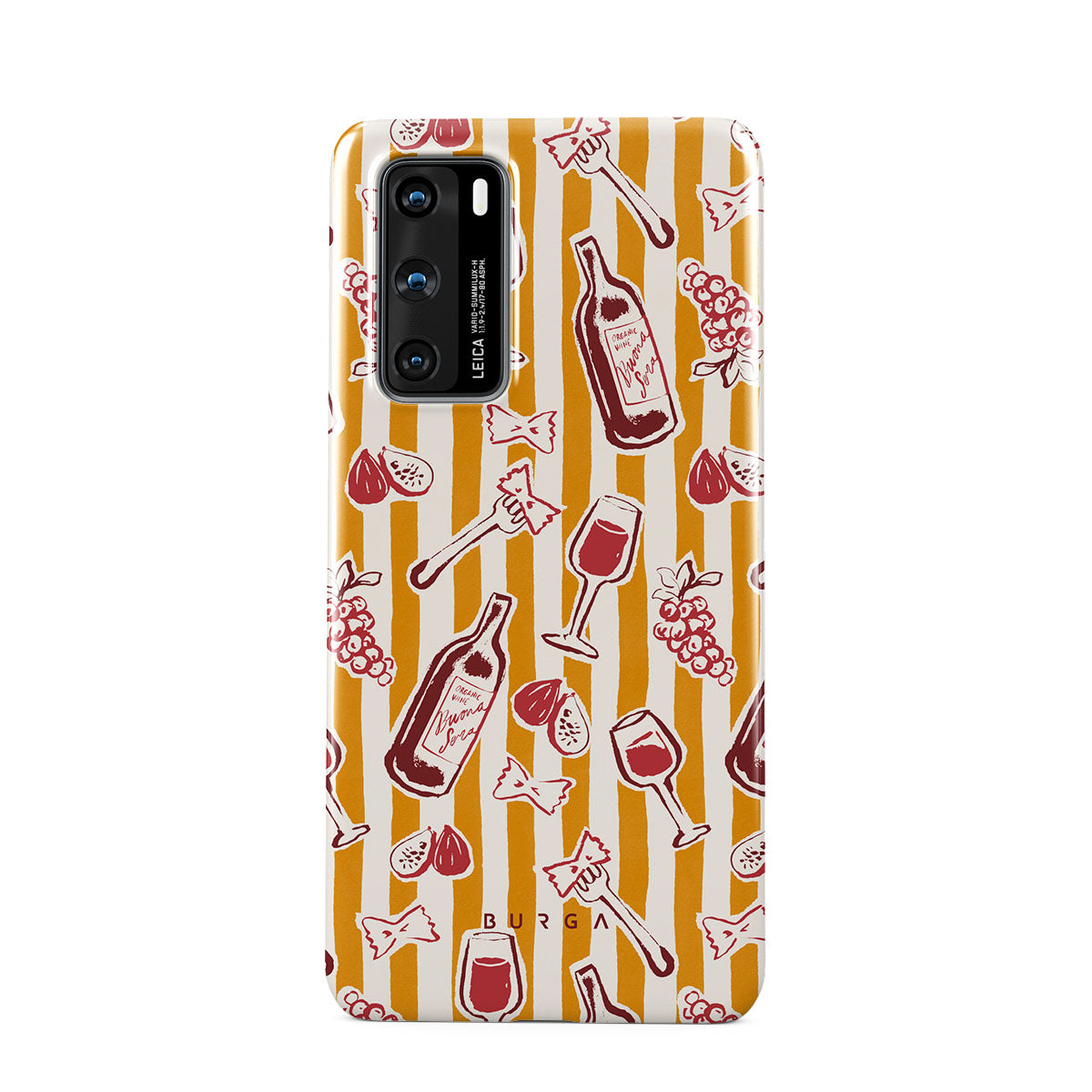 此設計特色:水果、無花果、葡萄、叉子、義大利麵、葡萄酒、酒杯、條紋