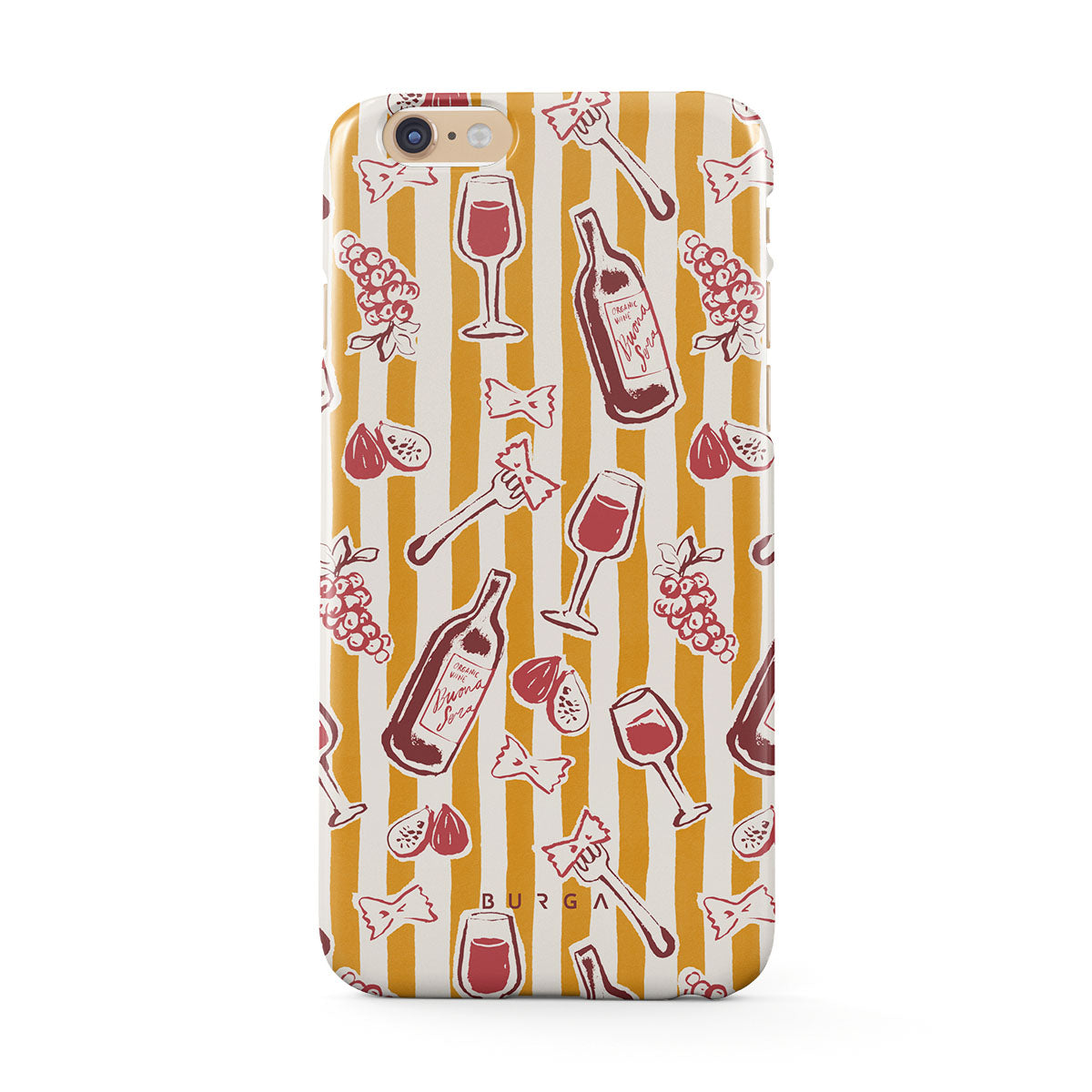 此設計特色:水果、無花果、葡萄、叉子、義大利麵、葡萄酒、酒杯、條紋