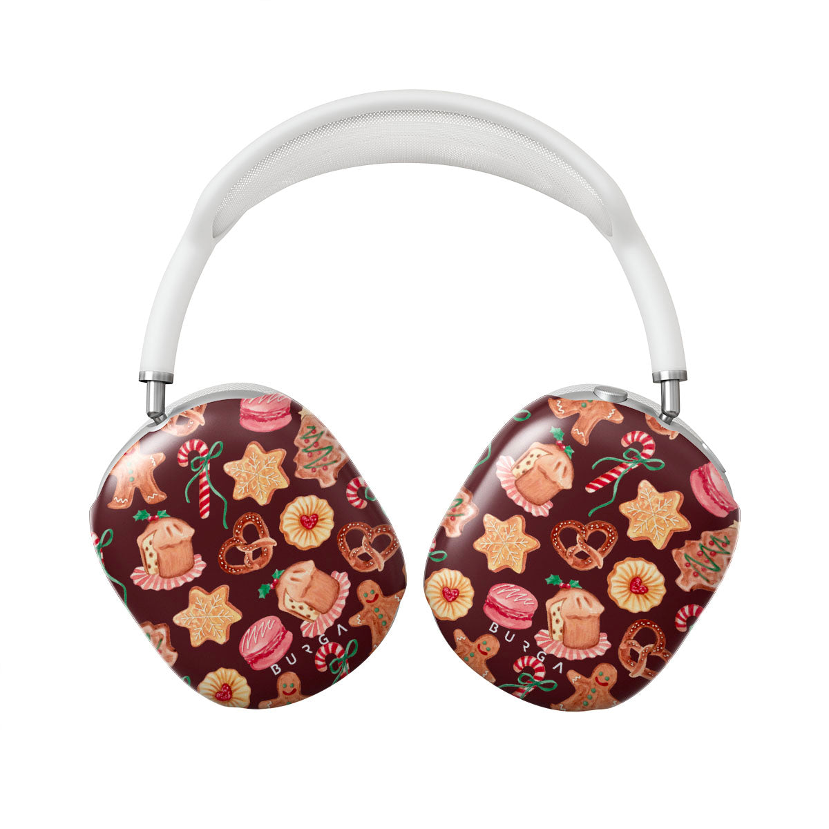 此設計特色:聖誕餅乾,薑餅人,糖果杖,薄荷糖果,節日甜點,酒紅色背景