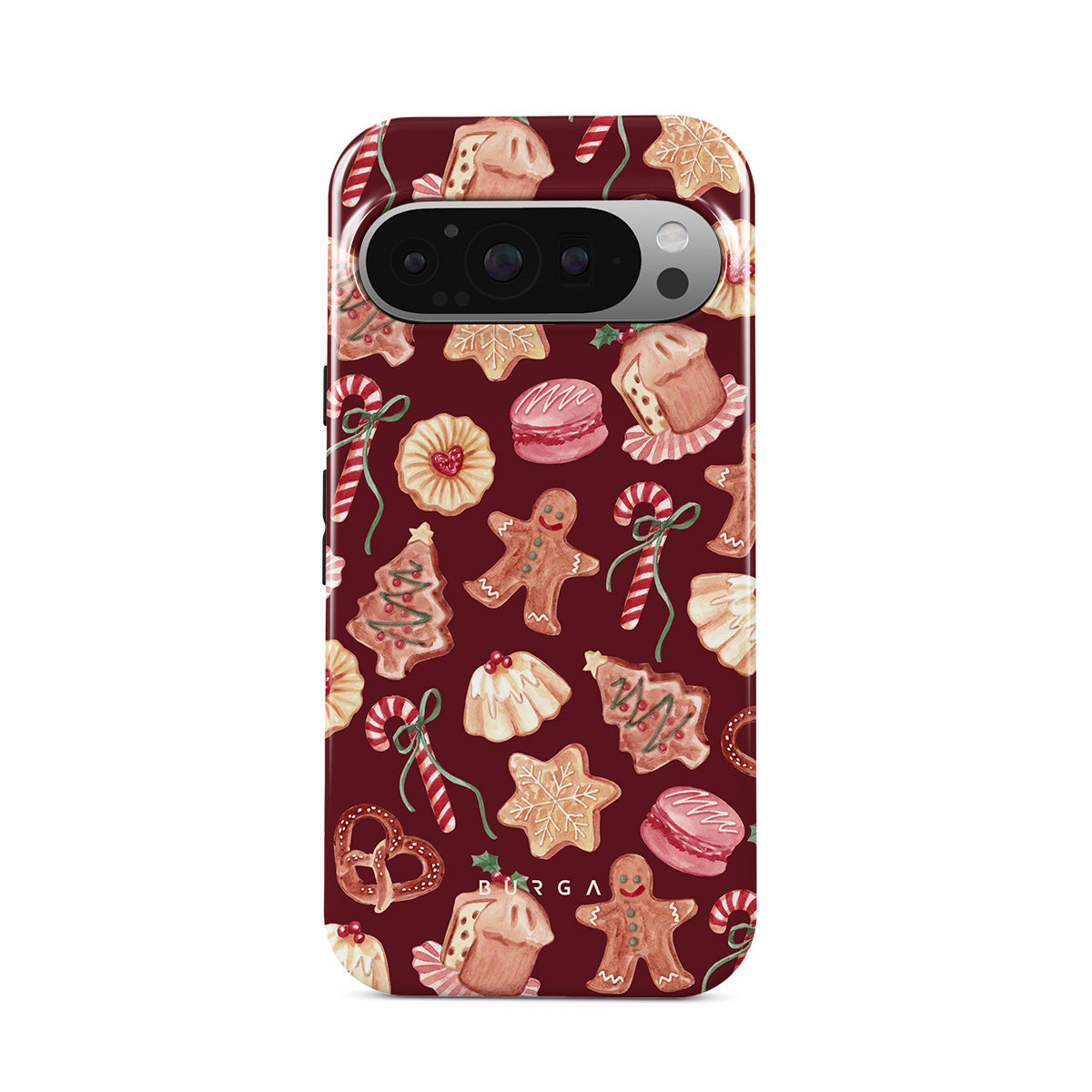 此設計特色:聖誕餅乾,薑餅人,糖果杖,薄荷糖果,節日甜點,酒紅色背景