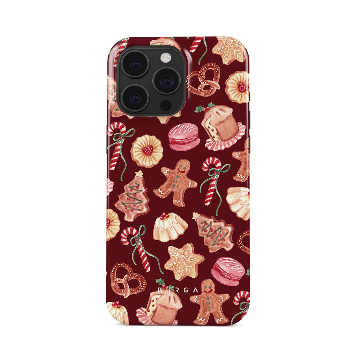 此設計特色:聖誕餅乾,薑餅人,糖果杖,薄荷糖果,節日甜點,酒紅色背景