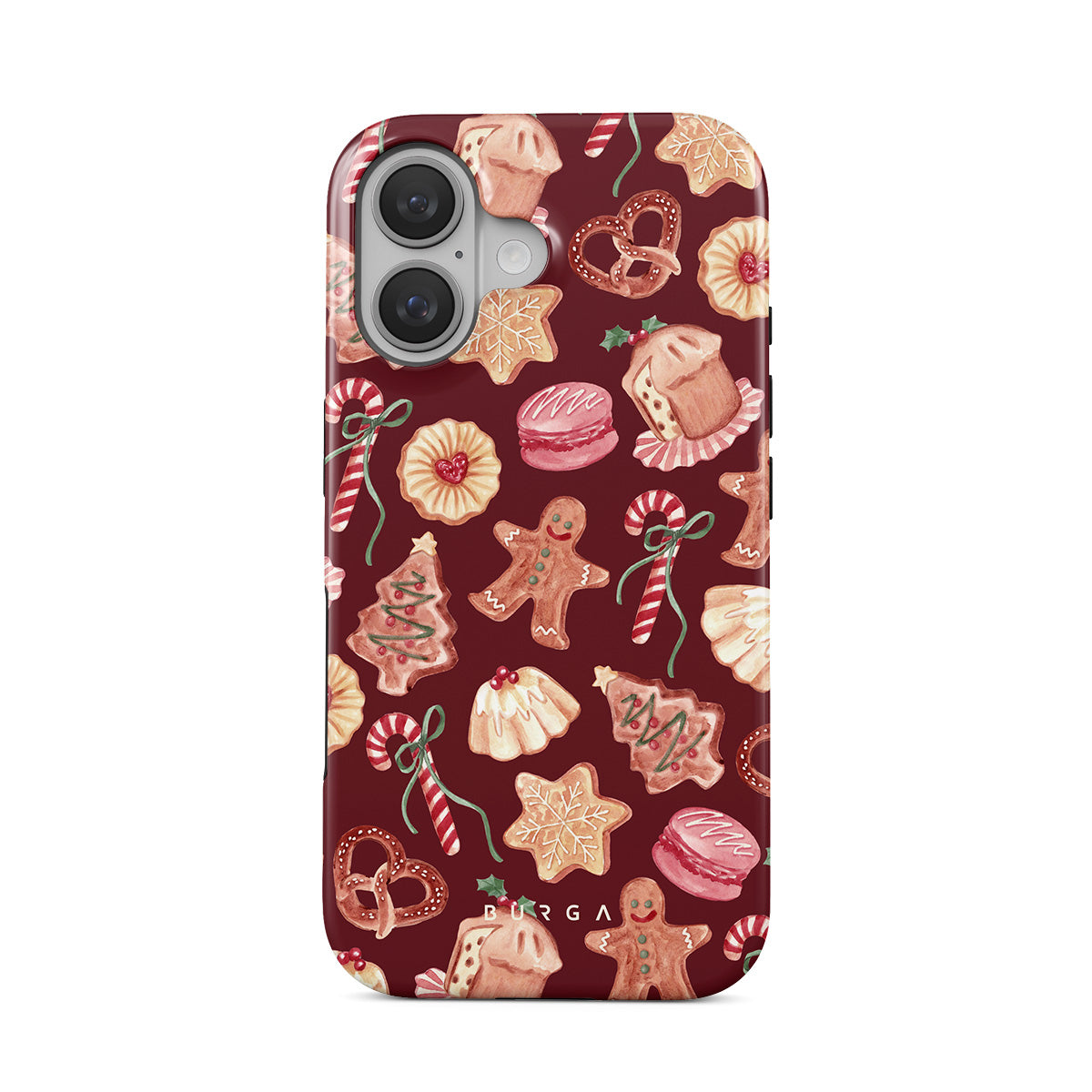 此設計特色:聖誕餅乾,薑餅人,糖果杖,薄荷糖果,節日甜點,酒紅色背景