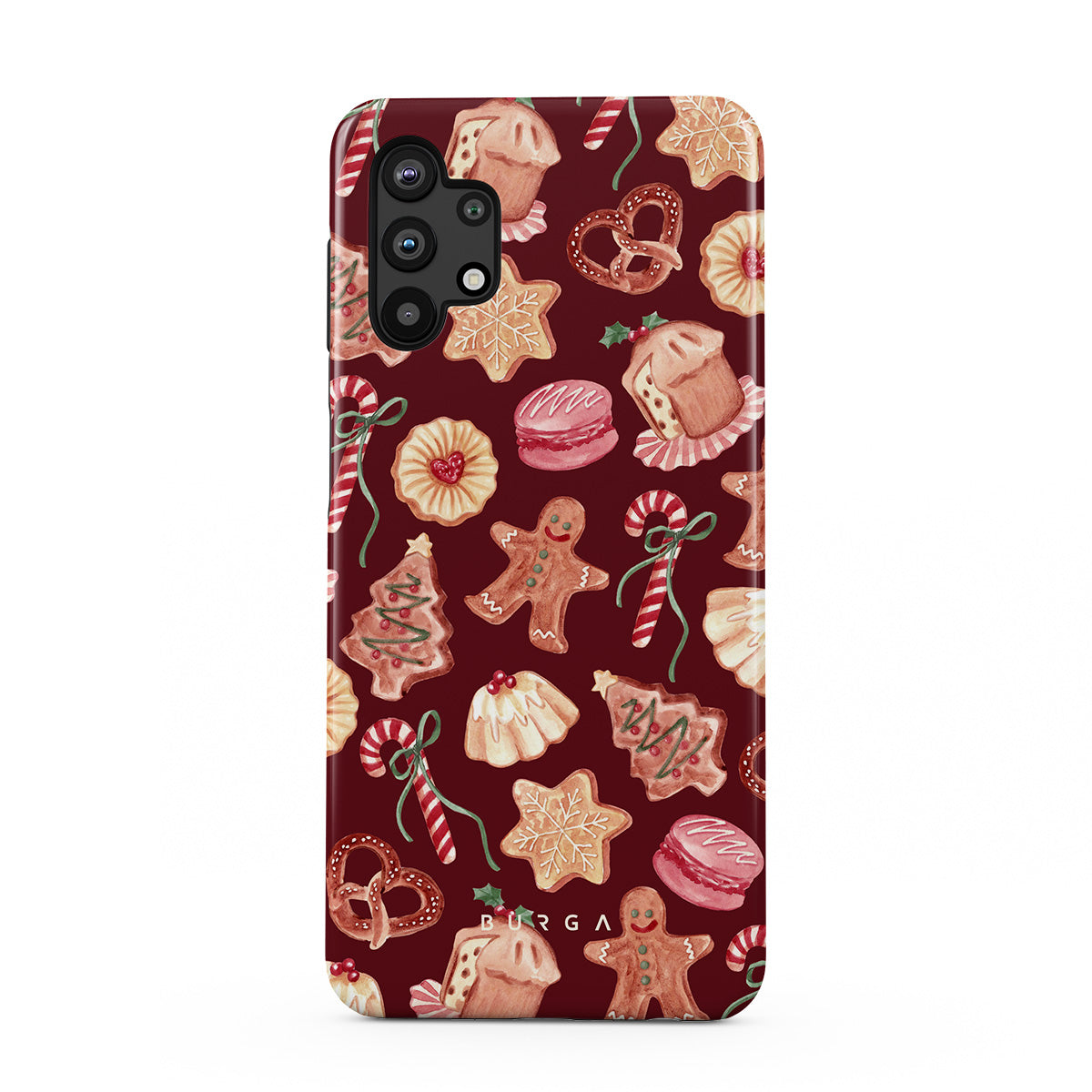 此設計特色:聖誕餅乾,薑餅人,糖果杖,薄荷糖果,節日甜點,酒紅色背景