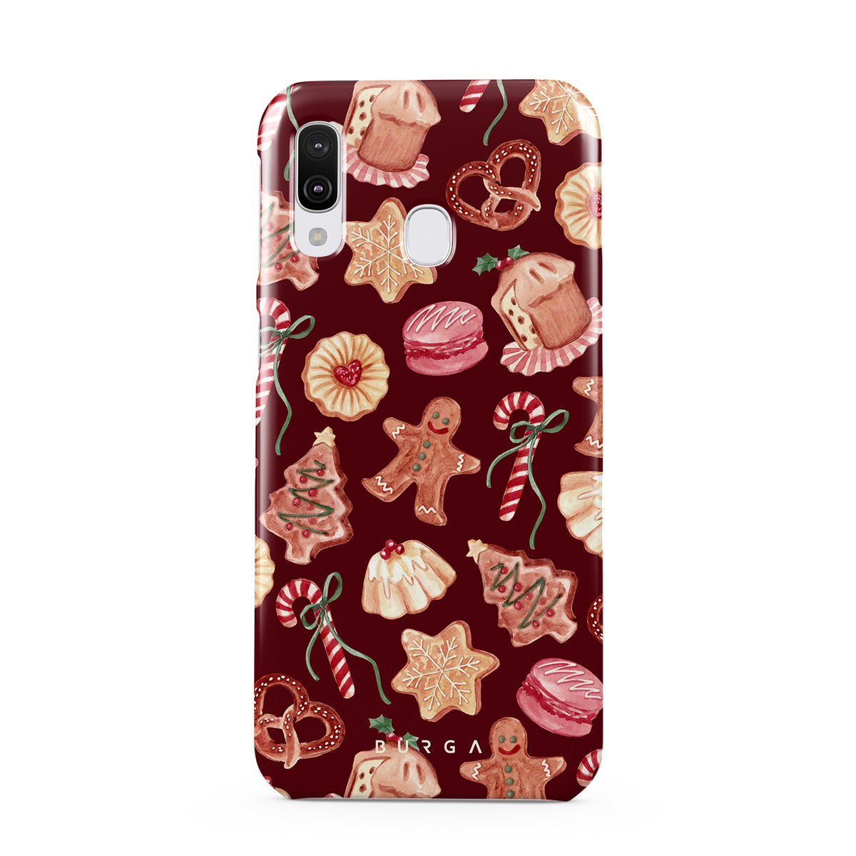 此設計特色:聖誕餅乾,薑餅人,糖果杖,薄荷糖果,節日甜點,酒紅色背景