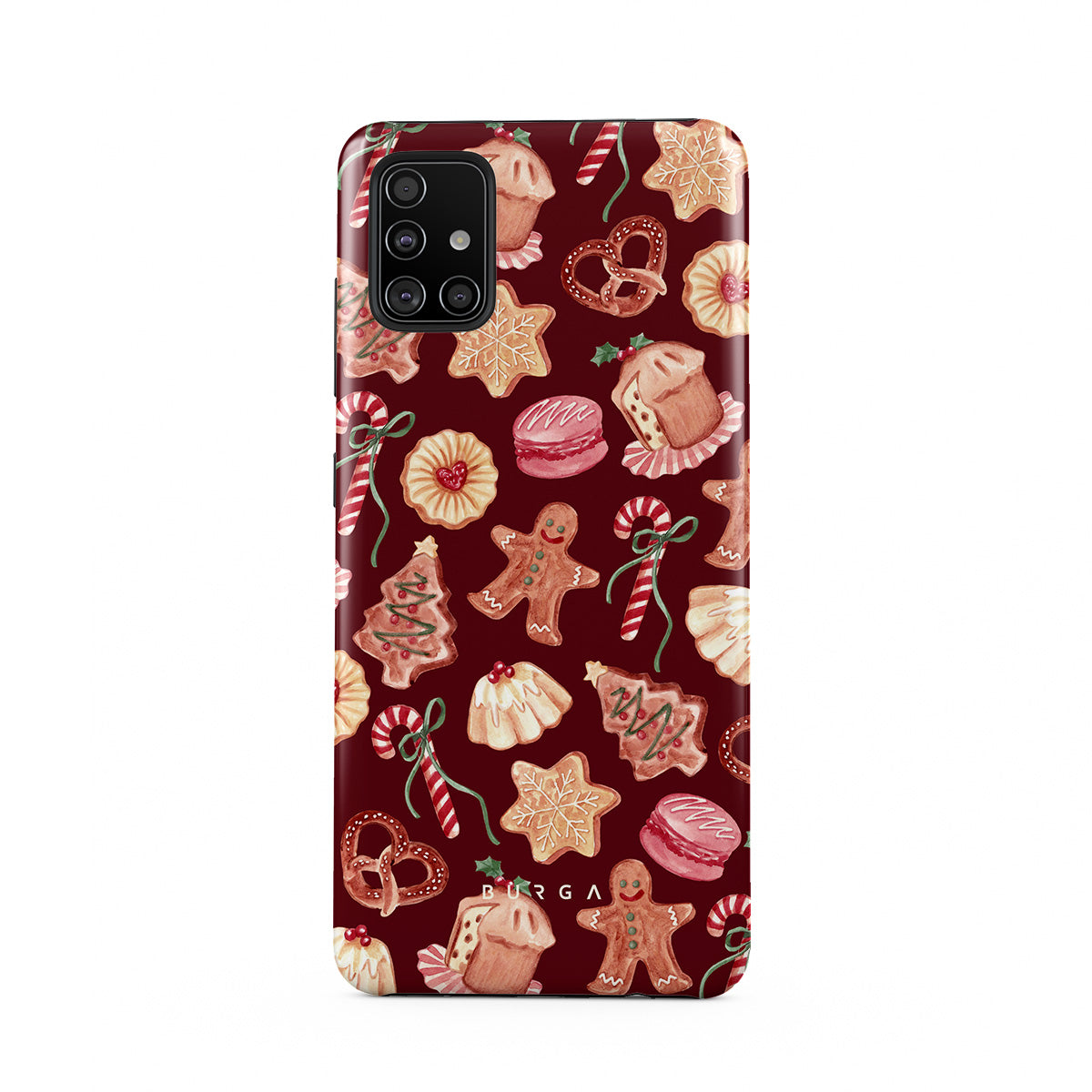 此設計特色:聖誕餅乾,薑餅人,糖果杖,薄荷糖果,節日甜點,酒紅色背景