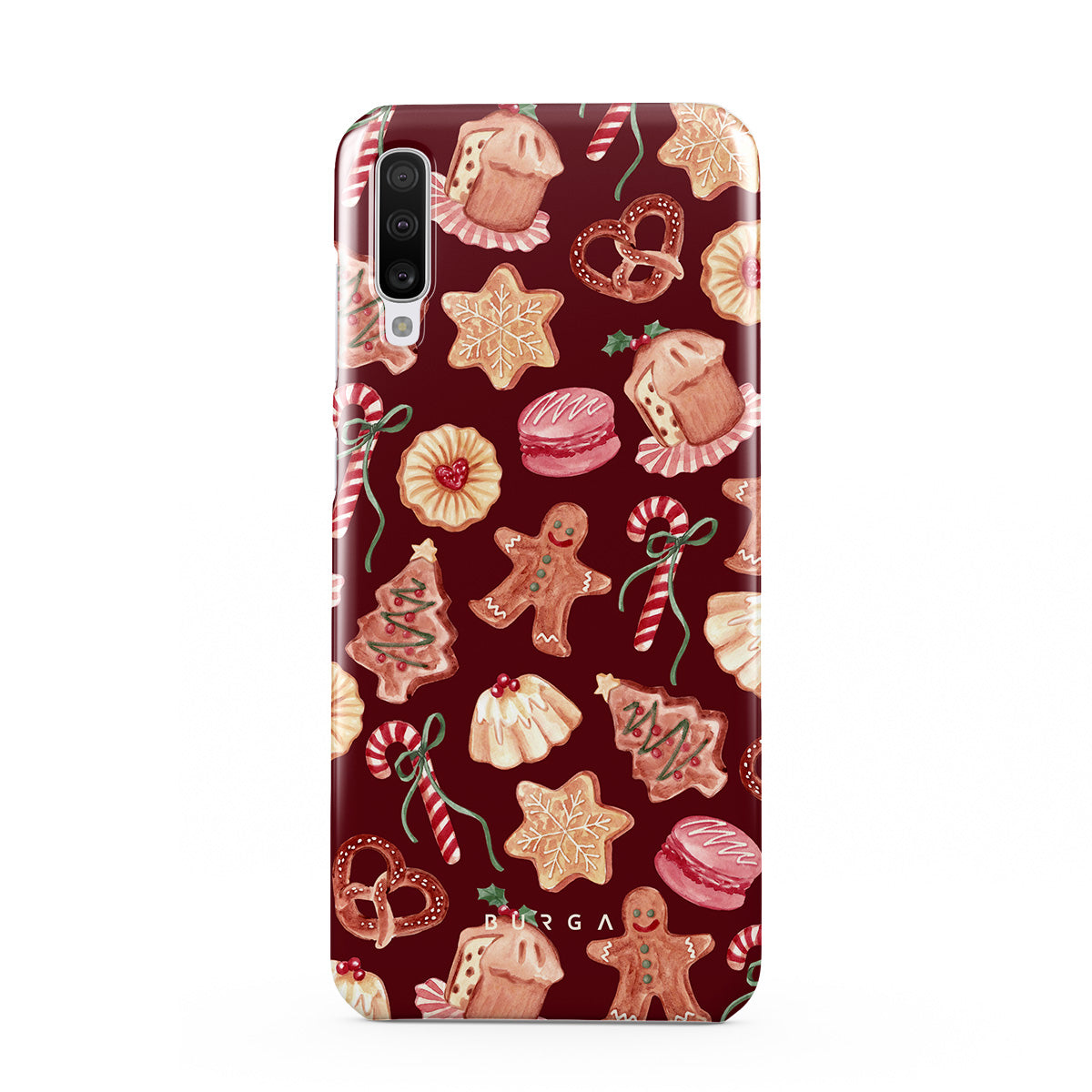 此設計特色:聖誕餅乾,薑餅人,糖果杖,薄荷糖果,節日甜點,酒紅色背景