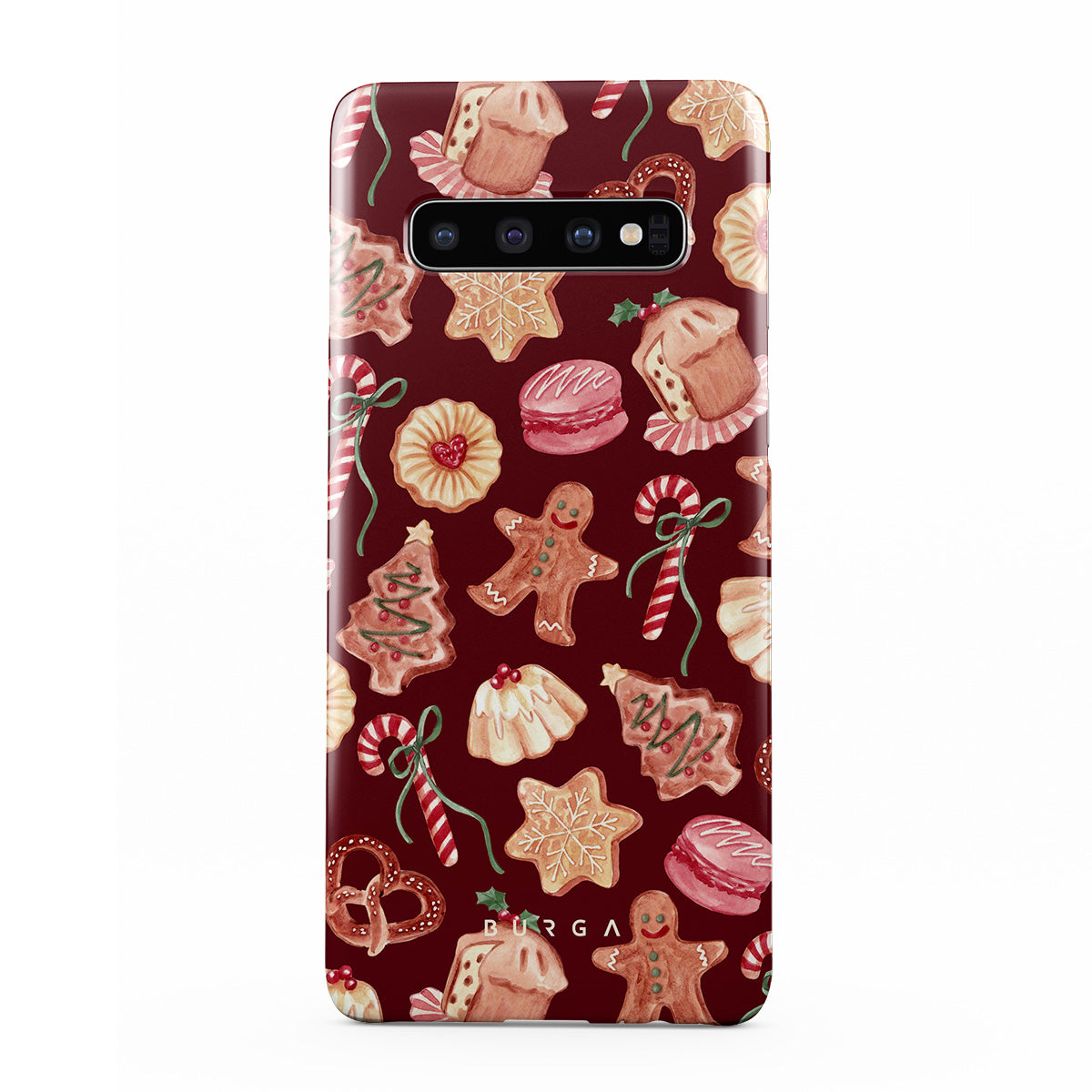 此設計特色:聖誕餅乾,薑餅人,糖果杖,薄荷糖果,節日甜點,酒紅色背景