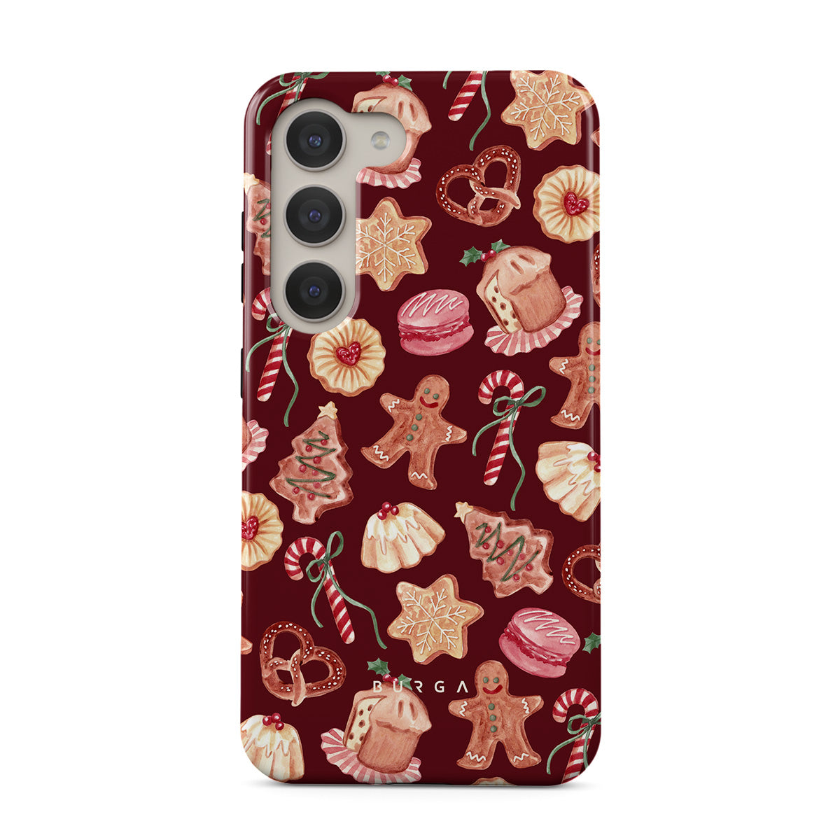 此設計特色:聖誕餅乾,薑餅人,糖果杖,薄荷糖果,節日甜點,酒紅色背景