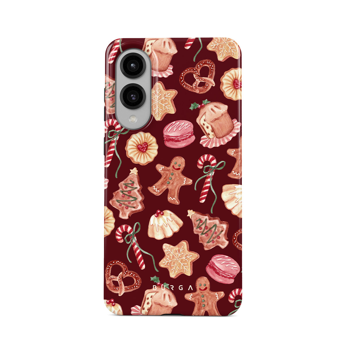 此設計特色:聖誕餅乾,薑餅人,糖果杖,薄荷糖果,節日甜點,酒紅色背景