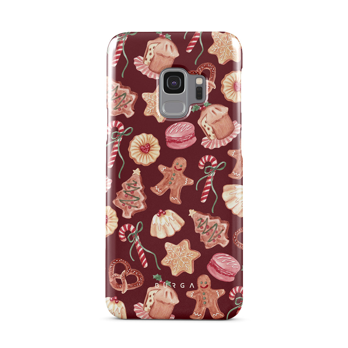 此設計特色:聖誕餅乾,薑餅人,糖果杖,薄荷糖果,節日甜點,酒紅色背景