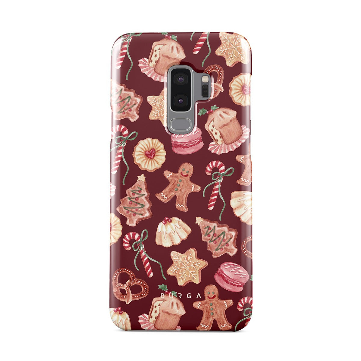 此設計特色:聖誕餅乾,薑餅人,糖果杖,薄荷糖果,節日甜點,酒紅色背景