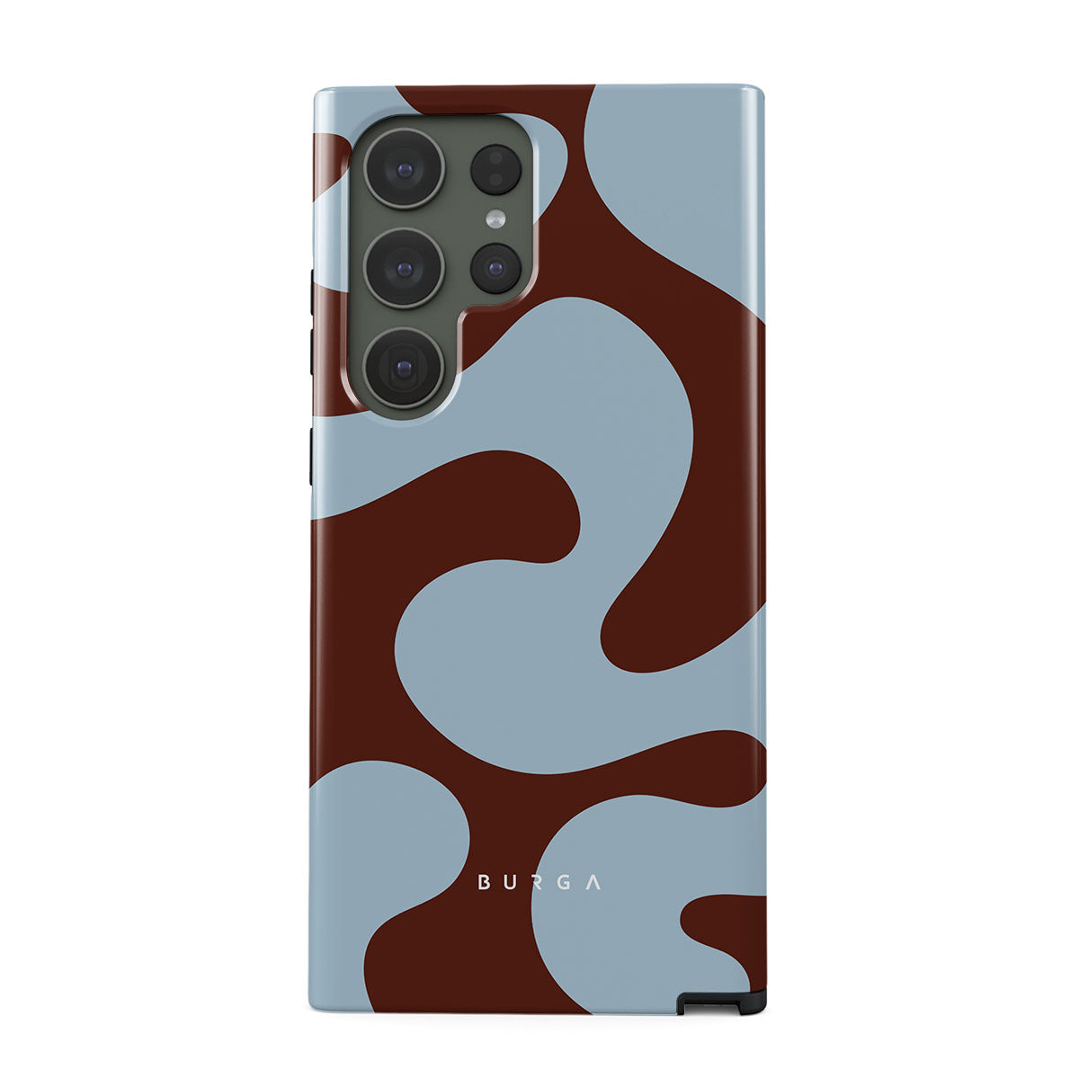 此設計特色:波浪,抽象圖案,棕色漩渦,淺藍色漩渦.