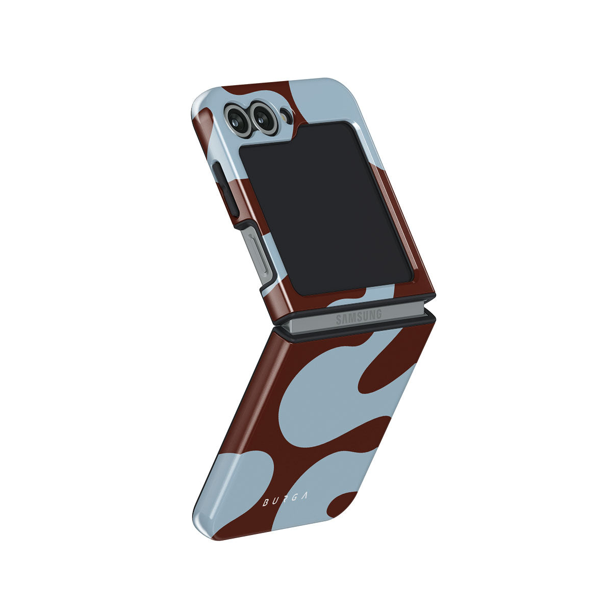 此設計特色:波浪,抽象圖案,棕色漩渦,淺藍色漩渦.