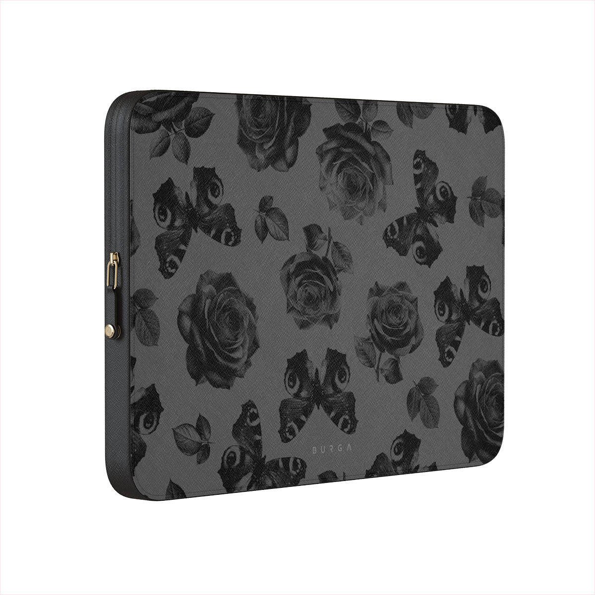 在這個設計中:黑玫瑰、哥德式花朵、大氣色調。