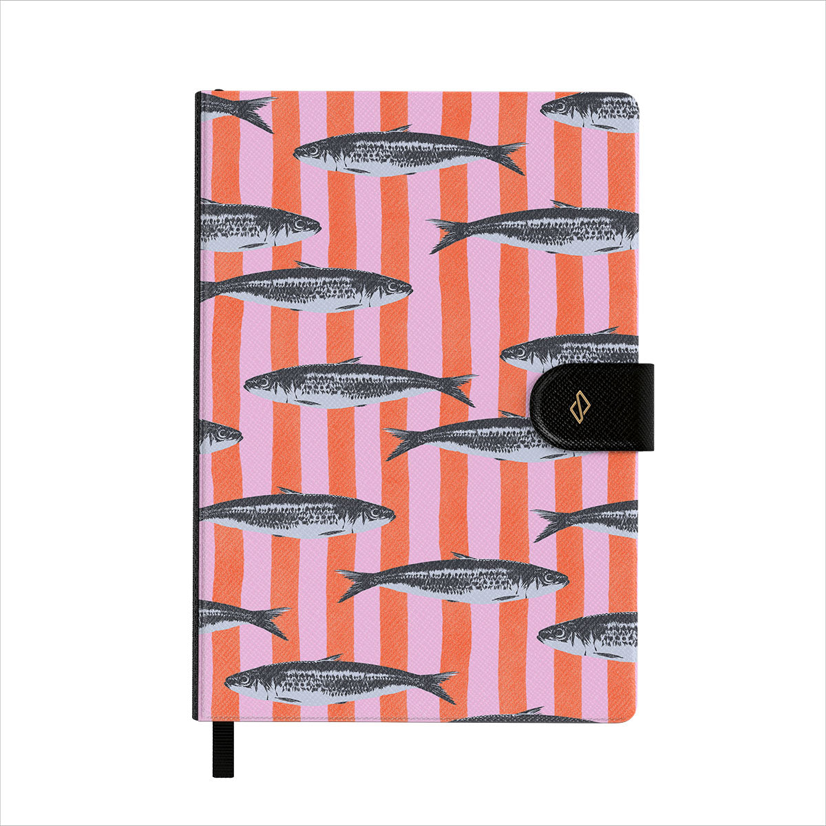 - Vegan Faux 皮革的硬式封面,附有獨特風格設計