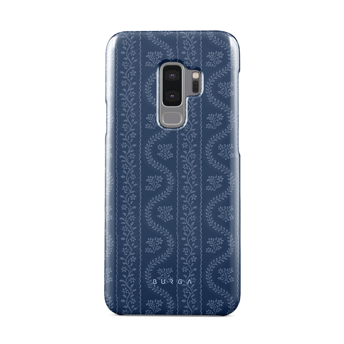 這款手機殼設計採用了佩斯里、仿牛仔布、復古懷舊、經典款式、繁複花紋和藍色系的印花。