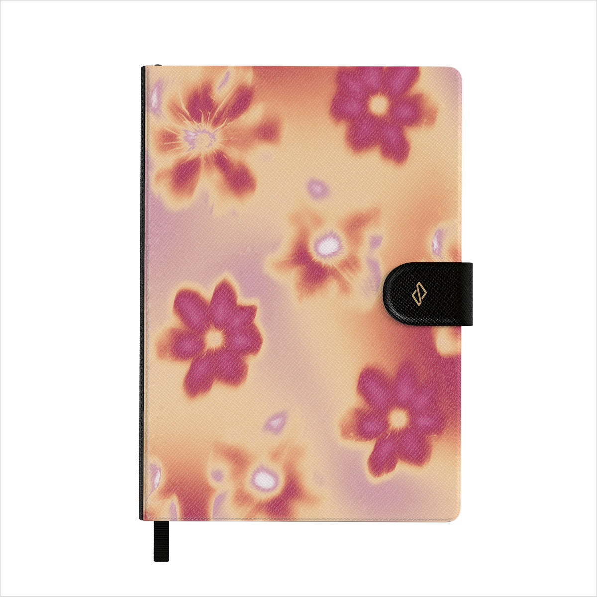 BURGA 精心設計的圖案,搭配 Vegan Faux 皮革封面,頂部配有優雅的黑色絲帶書籤。